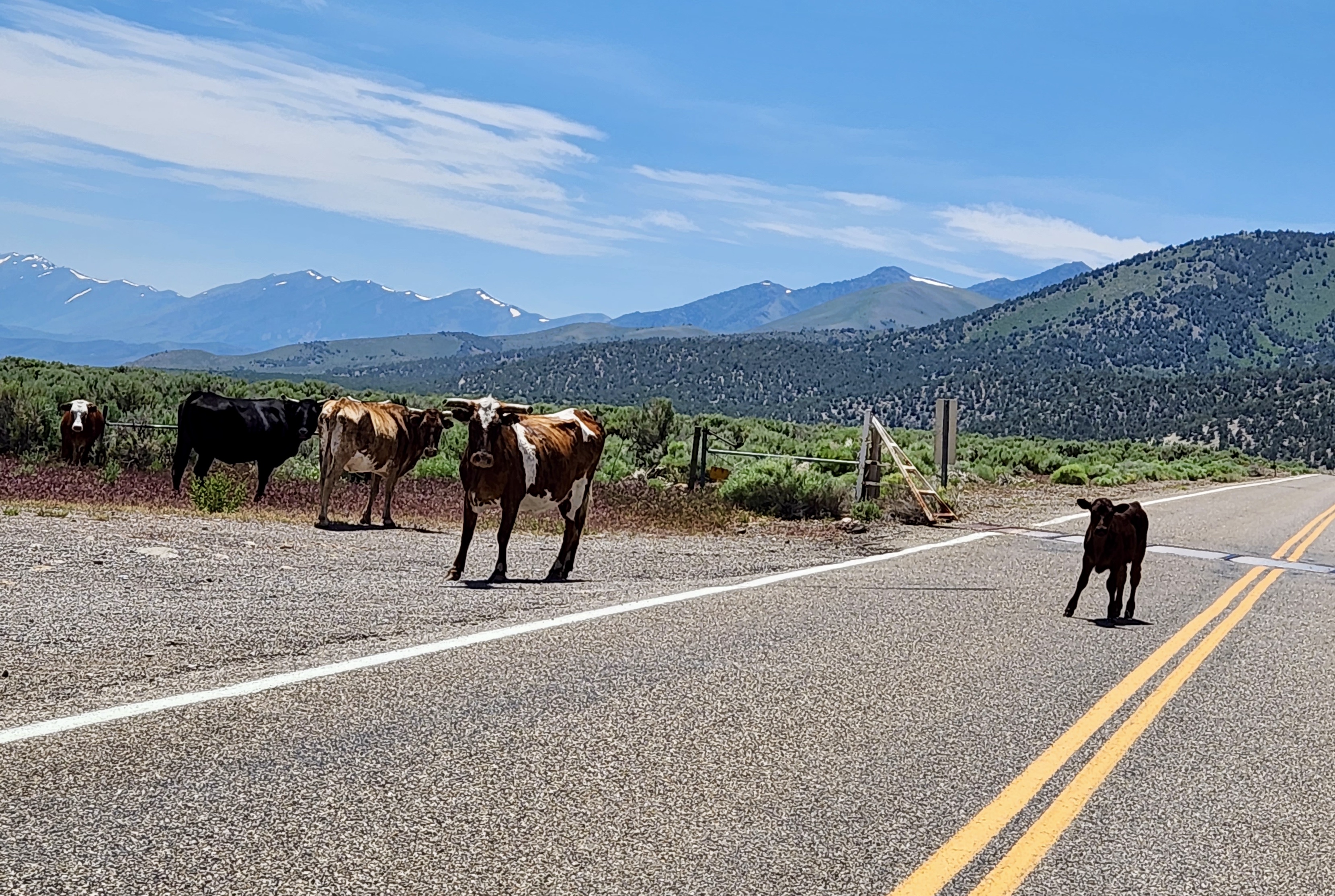 Lots of cattle on the road, wandering in and out of pastures. Apparently they like the grass alongside the road.