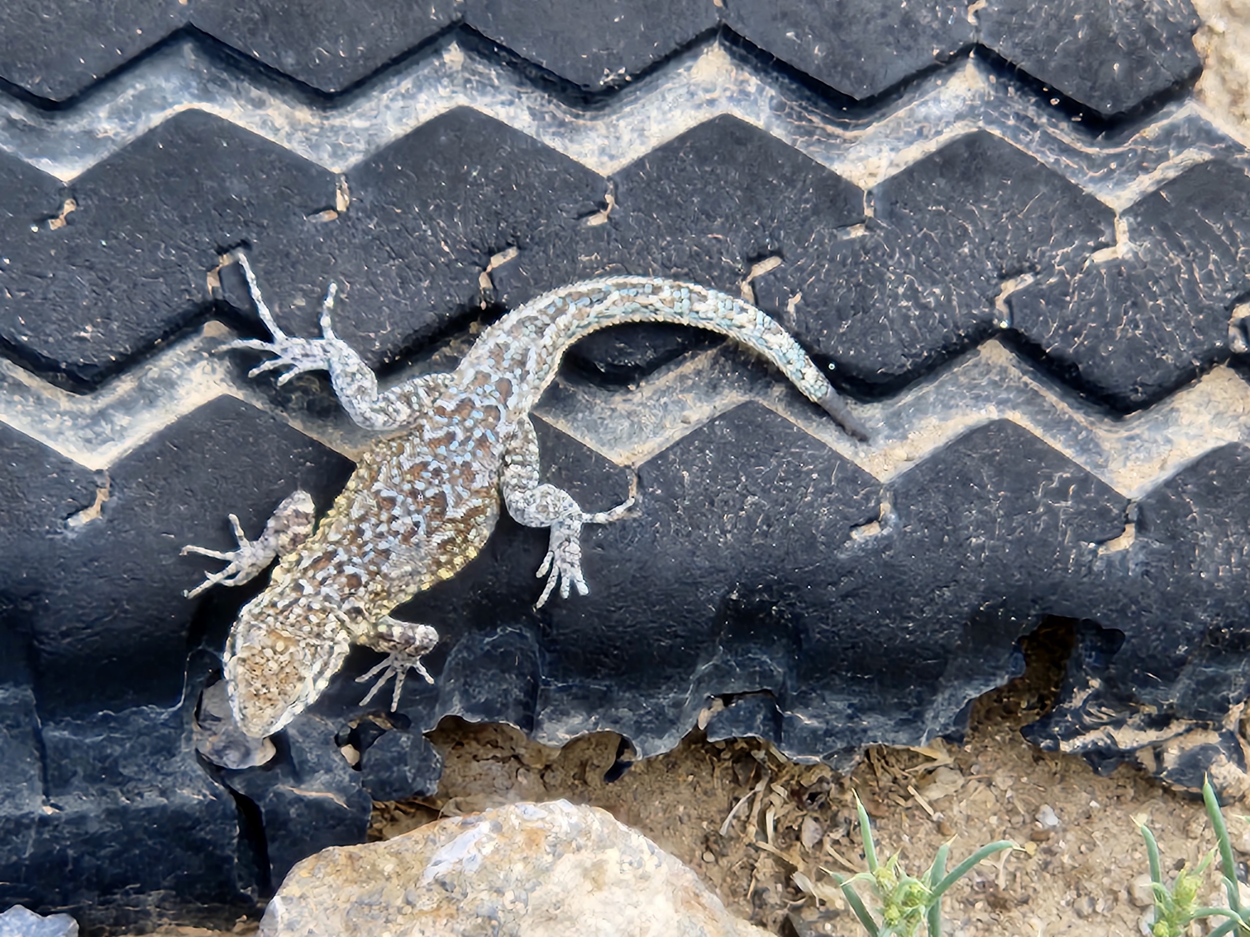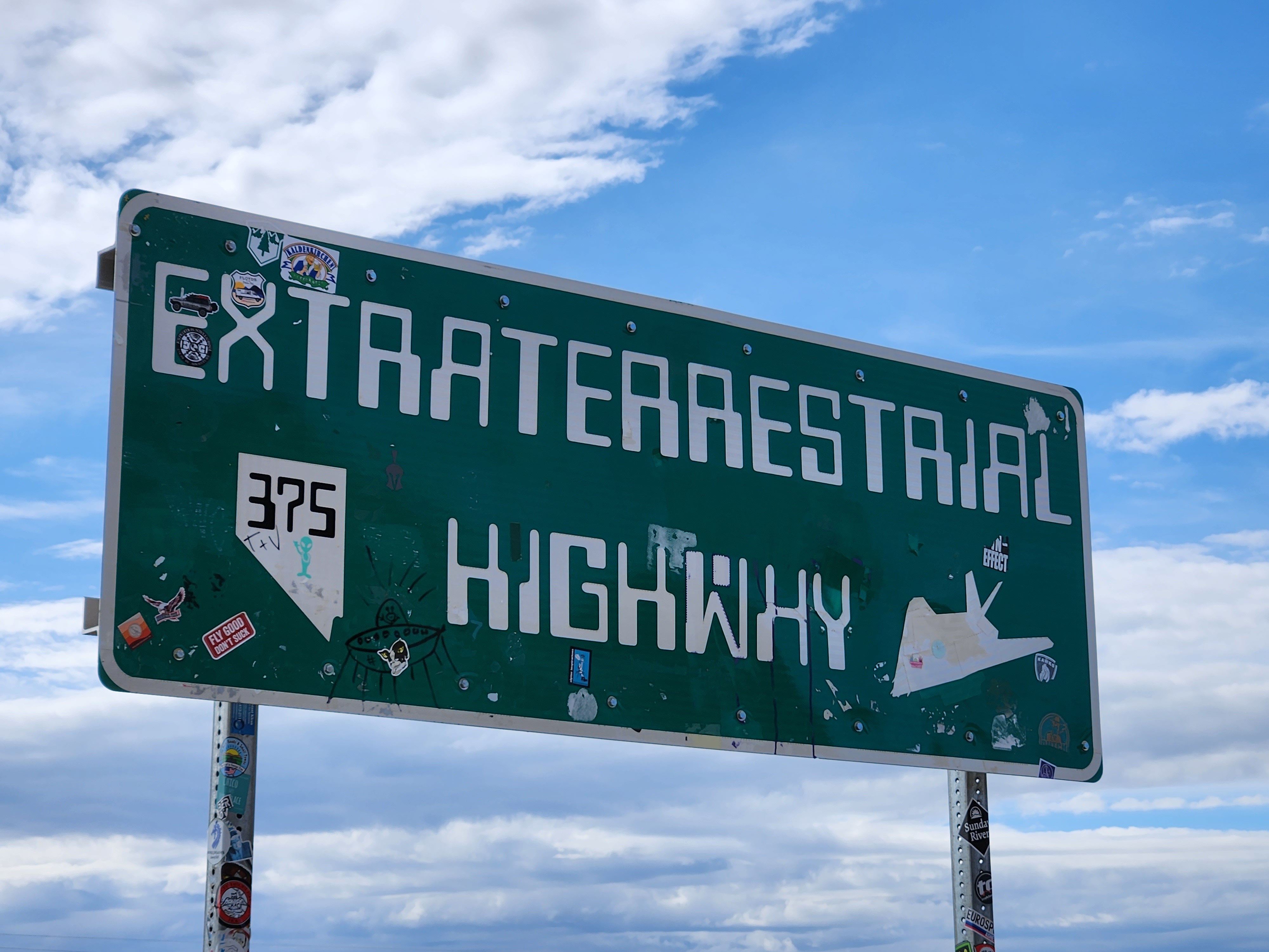 Even NDOT got into the ET spirit using far out font for this sign. Nary an ET did we see, but we did see the old shack and a lizard sitting on top of an old tire.