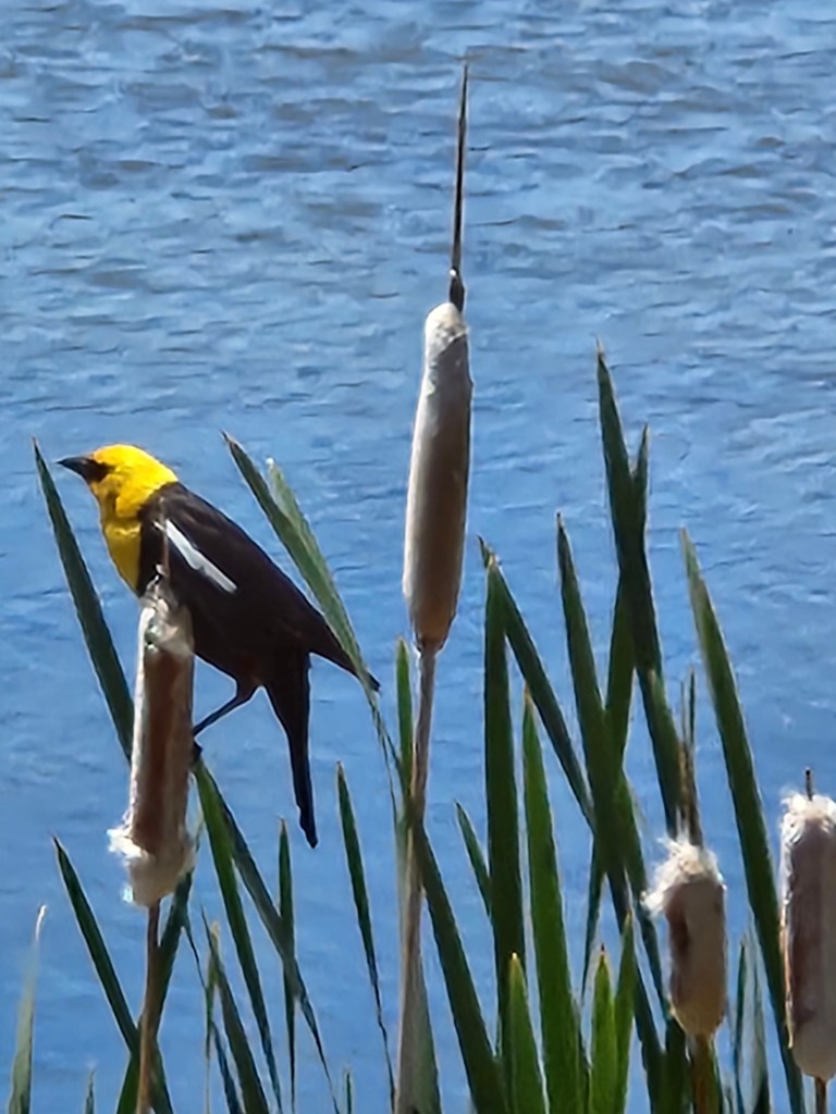 It was like being attacked by “The Birds!” There were hundreds of them all over the windows. Oddly enough, there were none on the other side of the wetlands where people were fishing. Obviously, they knew something we didn’t.