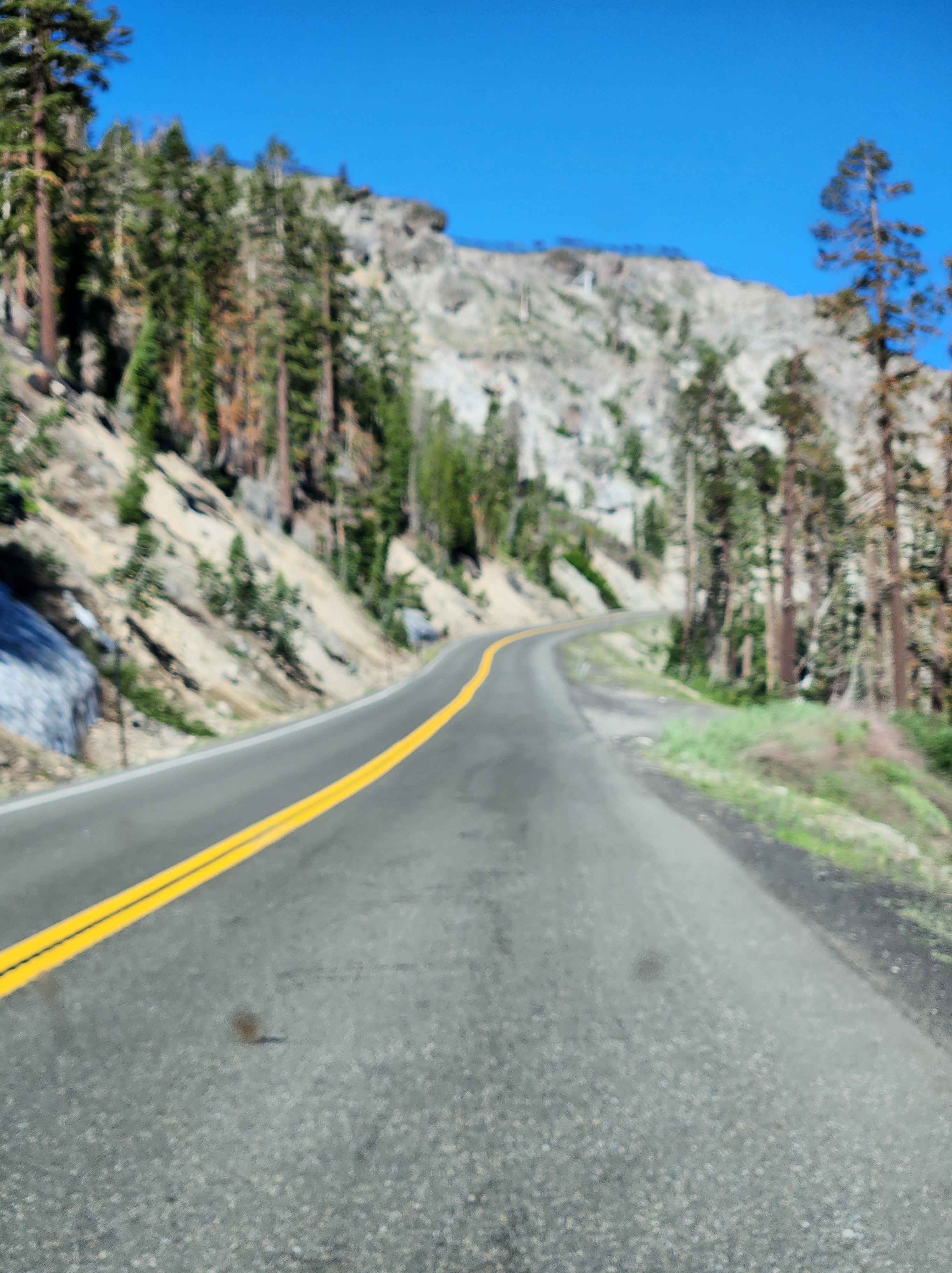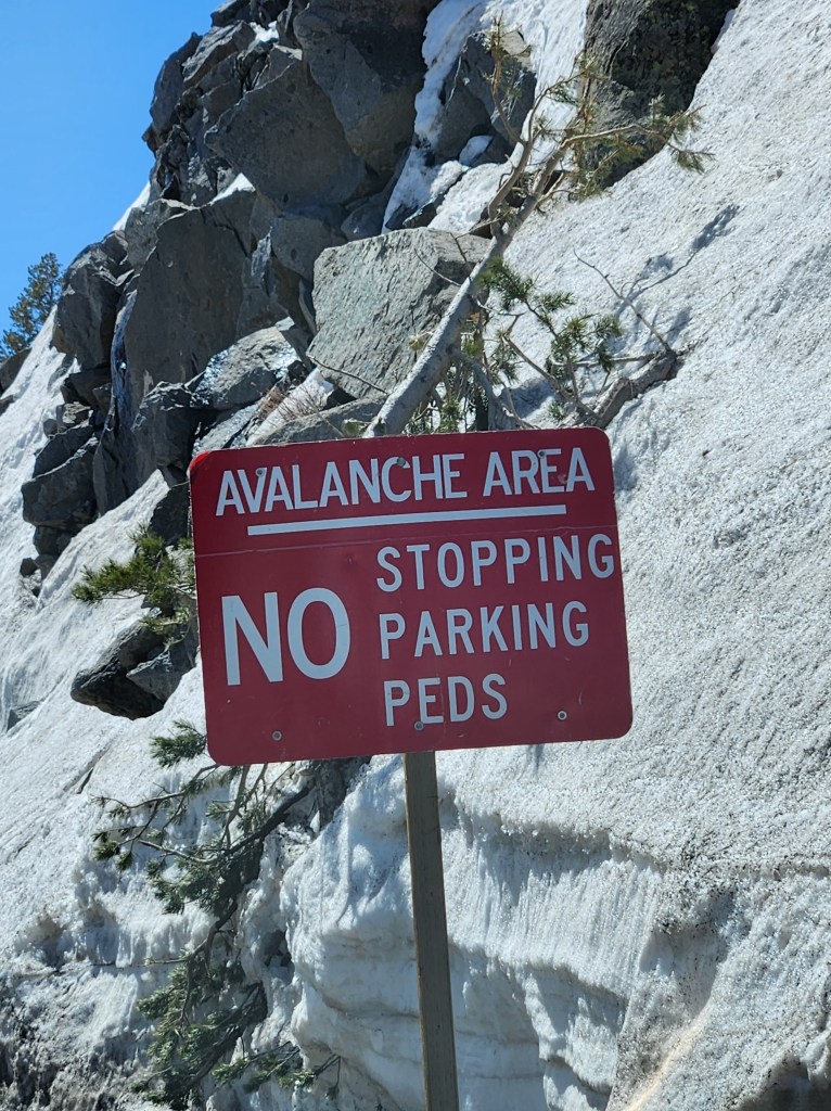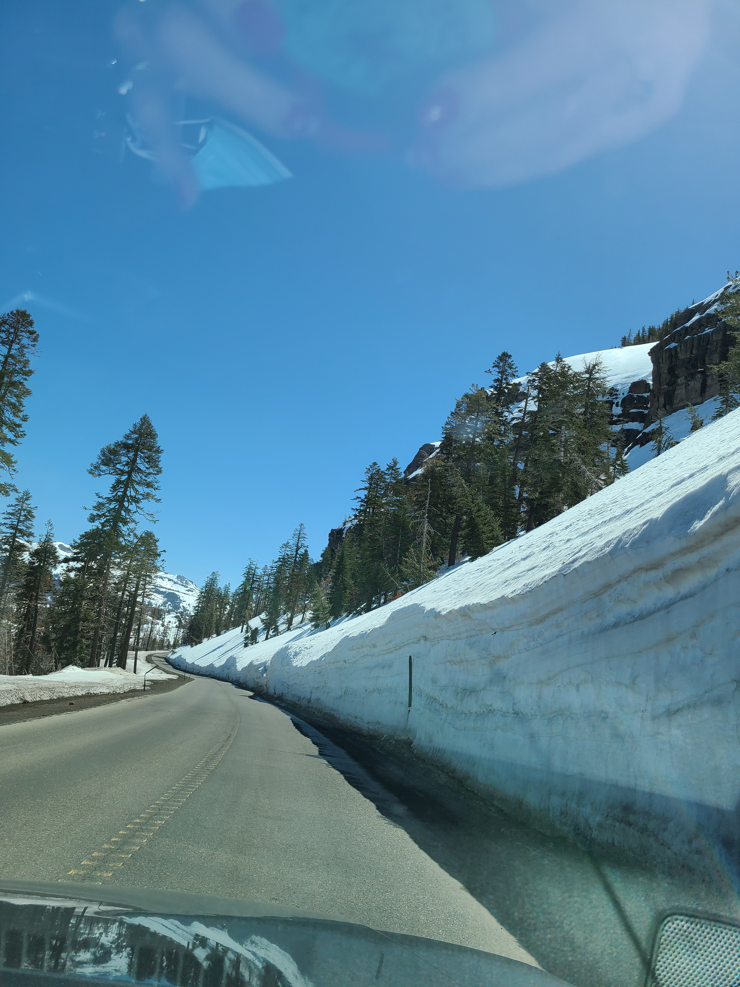he avalanche area going the opposite direction. Everything is looking good! That white patch to the left is a wall of snow. Sorry the photo is blurred somewhat. The road isn’t very smooth.