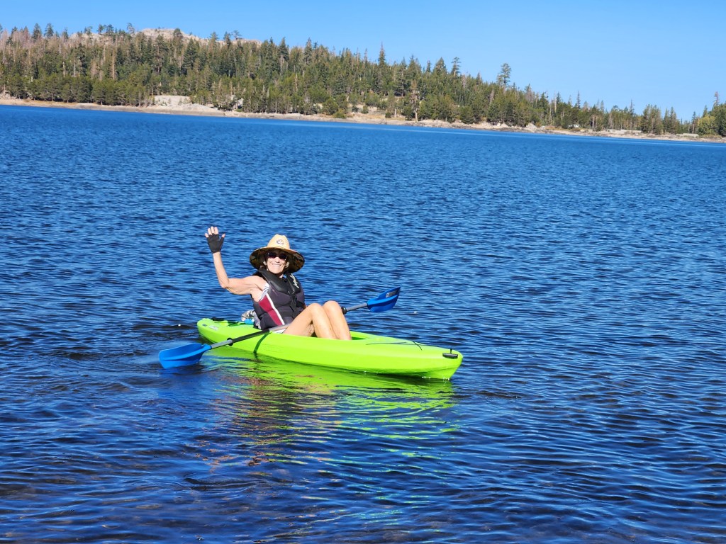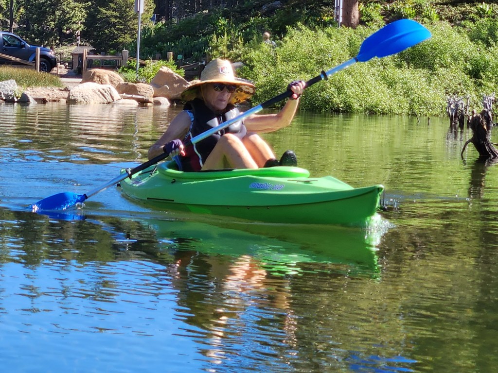 Jerri is already picking up speed to get out there and zip around the lake. Actually, we don’t zip. We take our time to check out the scenery and enjoy the moment.