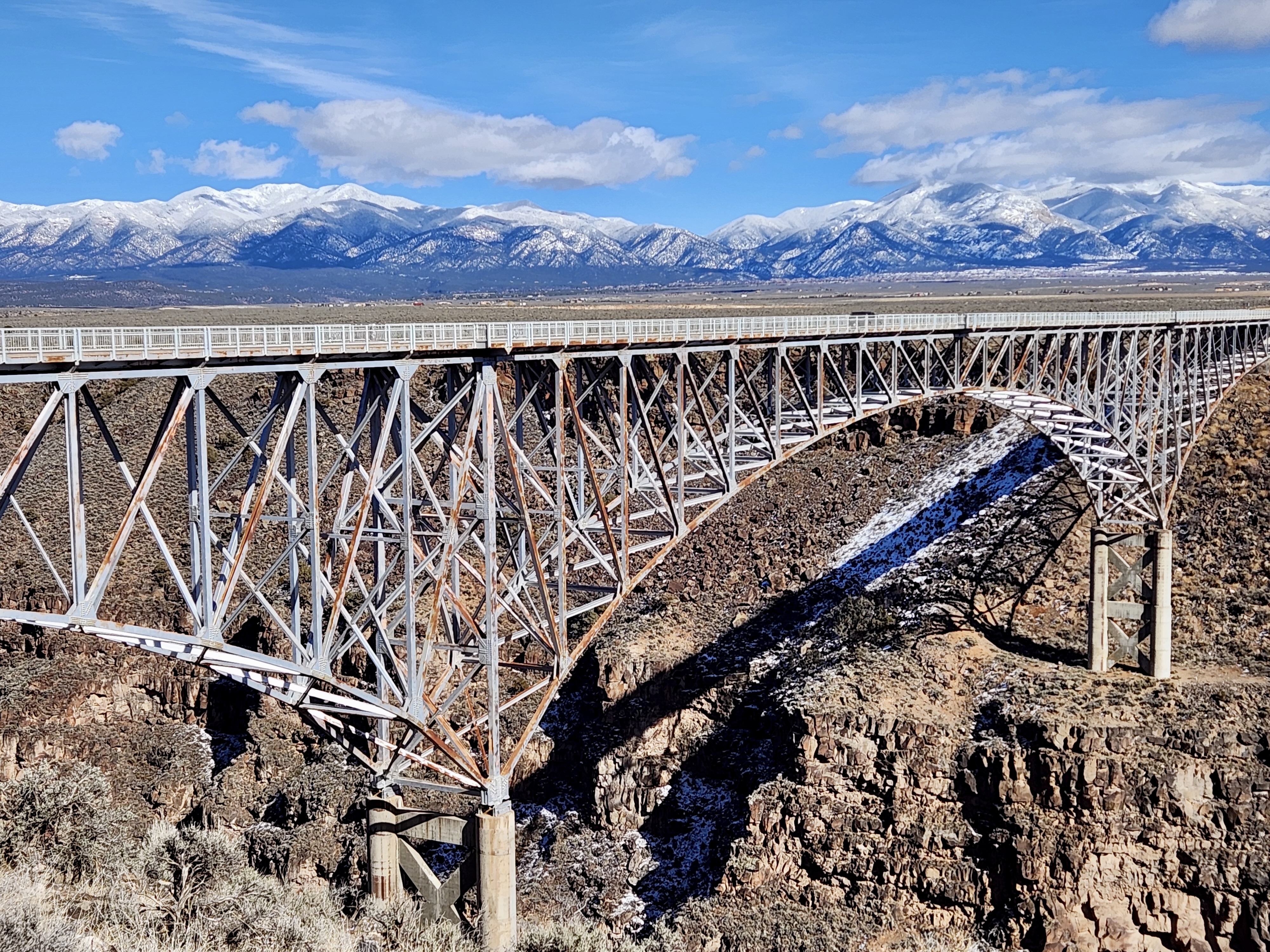 Another place we visited is the Rio Grande Gorge Bridge.  Yes, it’s the same Rio Grande that flows between Texas and Mexico.  The gorge is massive and deep, making it a bit nerve wracking to walk out on it.  If you’d like more info, click on this link. https://taos.org/explore/landmarks/gorge-bridge/