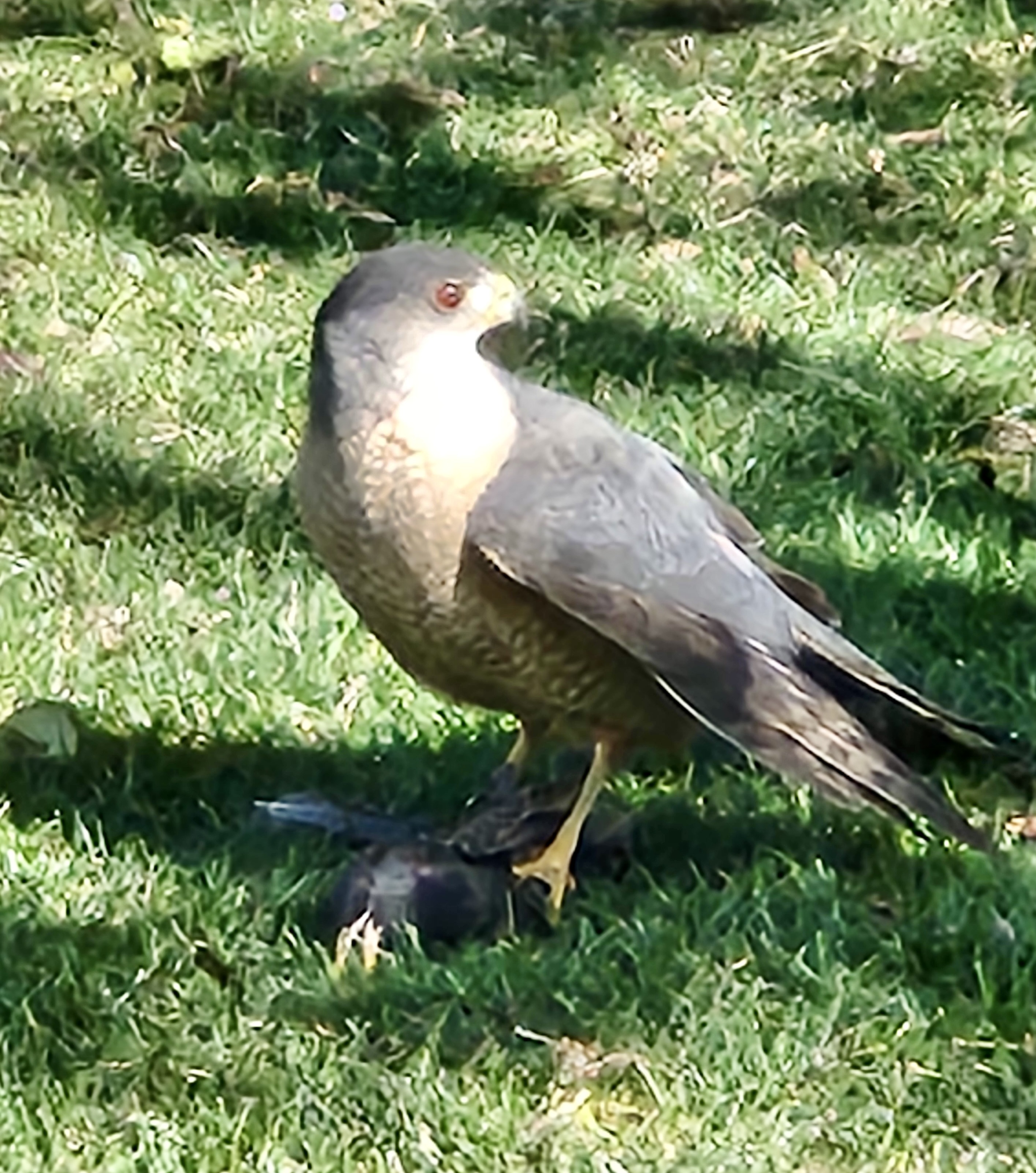 Occasionally, Earl’s back feet slip and he hangs on for dear life while he balances himself to adjust his grip. Note the mama quail in the background watching Earl’s antics.
