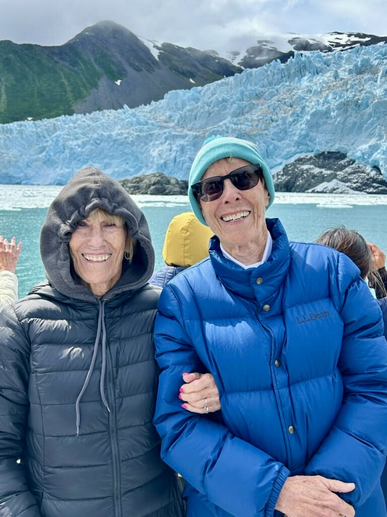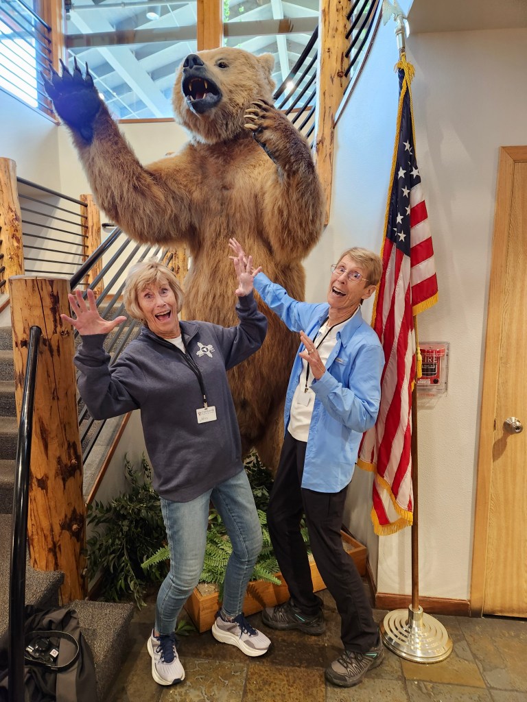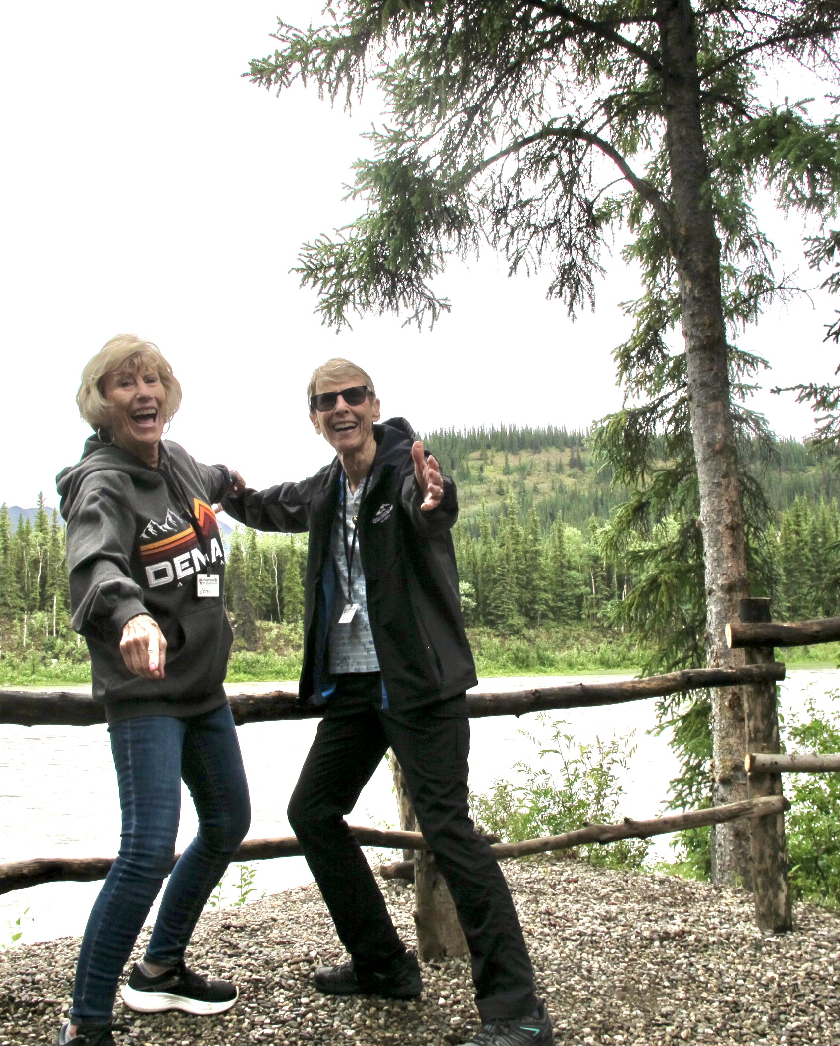 Fooling around by the Nenana River, right in back of our hotel room complex. Along the line, folks began to recognize us as sisters. So, “The Sisters” became our moniker for the trip.