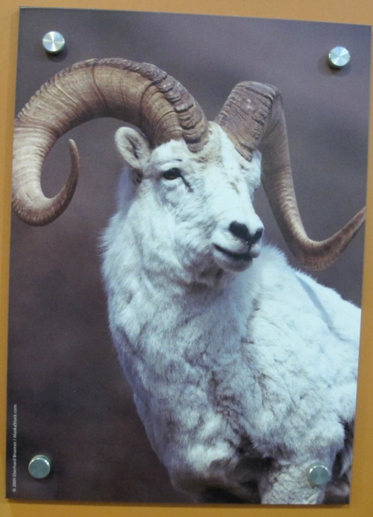 Dall sheep from a photo in the hotel lobby. Wish we had have seen one up close and personal.