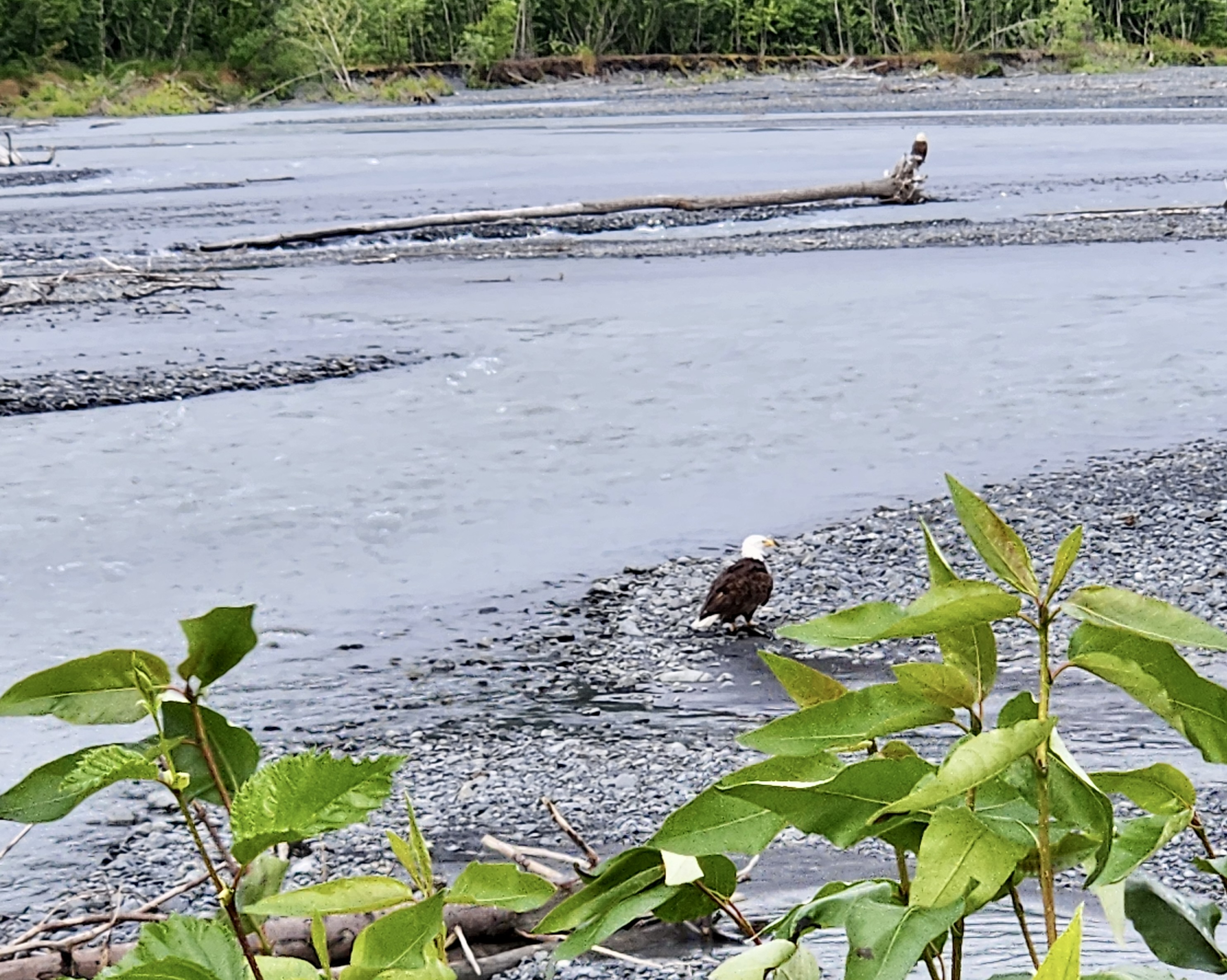 As we were paddling, Jerri noticed two bald eagles that seemed to be harassing a small flock of ducks.  The eagles would dive bomb the ducks (mergansers?) and then the ducks would flap their wings and sort of “run” on the water.  We don’t know if they had fish the eagles wanted or whatever, but we watched them for maybe 10 minutes repeating their actions before the eagles flew away.  Sadly, no pictures as they were too far away.  The “show” was fun though.