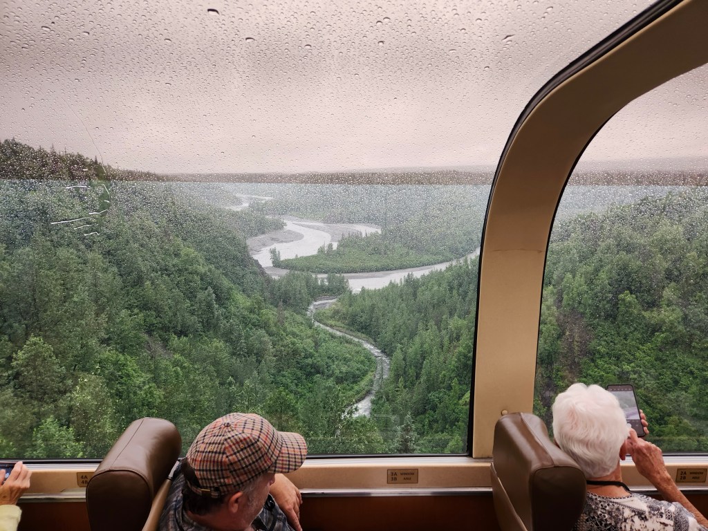 We landed in Anchorage and took the Alaska Railway train to Denali National Park. Sitting in the Dome Car and eating a good breakfast on board were a real treat. The journey was about 6 hours long with many good sights to see. We were told to watch for moose, bears and other critters. Jerri and I saw only 2 tundra swans.