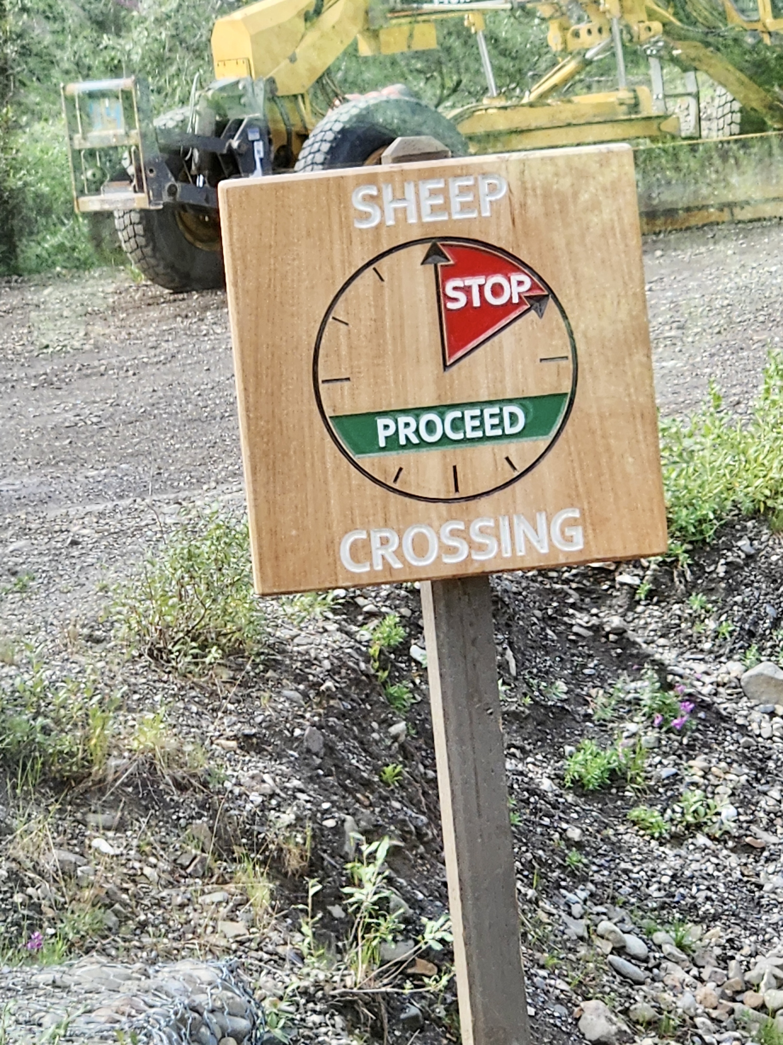 This really amused us. Someone paid $300 for 2 signs telling the tour buses to stop for 10 minutes because this area is a Dall sheep crossing. Apparently they do cross the road on occasion but they were in the high country when we were there.