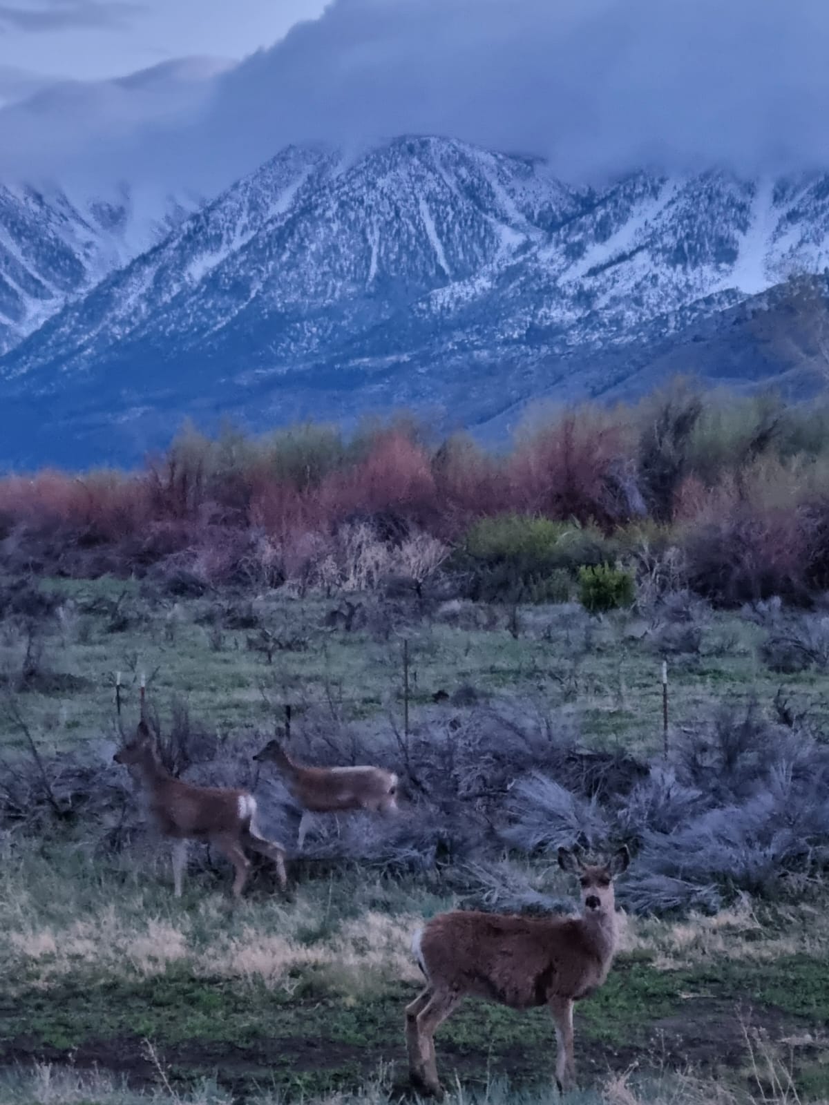 After dinner, I took them through Genoa to see the suicidal deer, which love to wander the streets and pay no mind to cars. We saw only 4 or 5 in town.