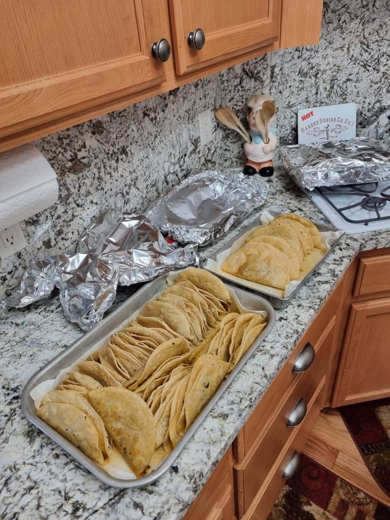 Jerri’s tacos for family dinner. We feasted and there weren’t many left out of the four pans!