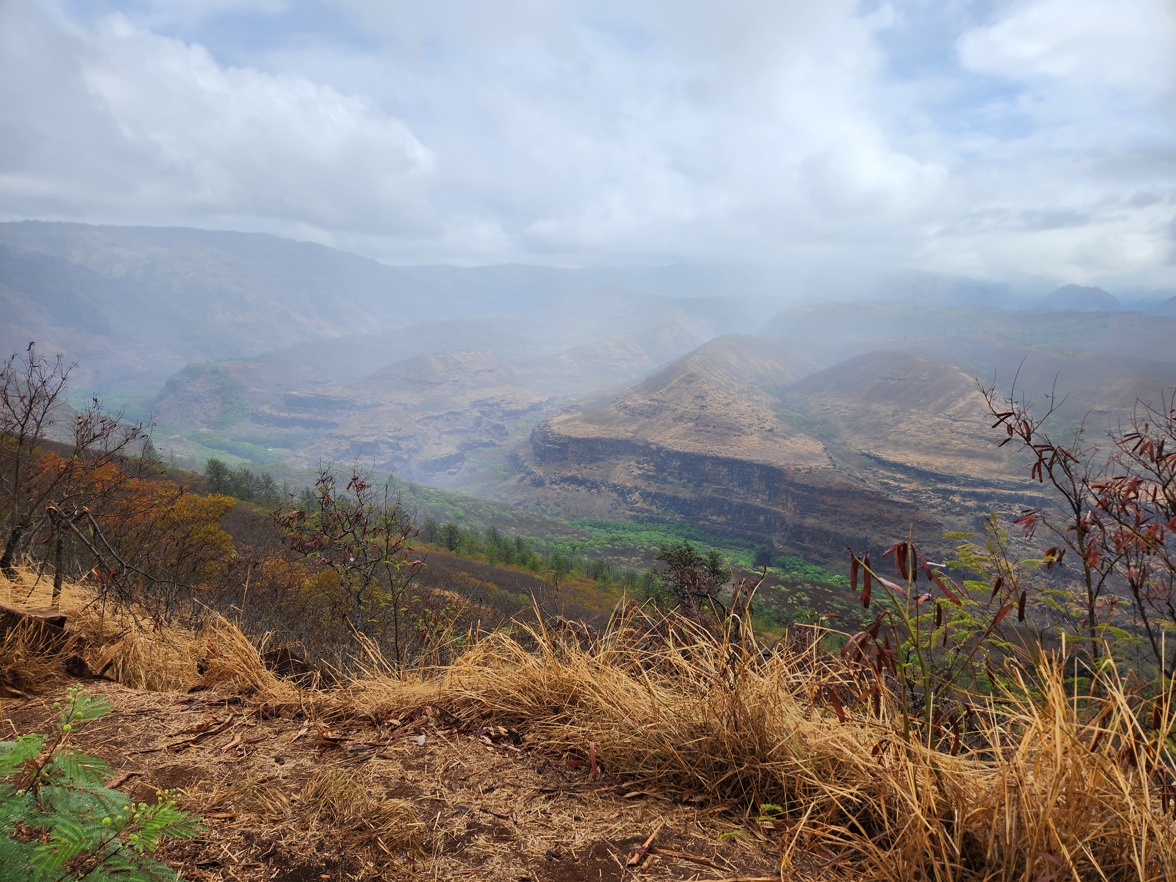 It was raining the first time we headed up to Waimea Canyon, a spectacular gorge, aka Grand Canyon of the Pacific.  We didn’t mind the rain as locals had been telling us that they really needed the moisture.
