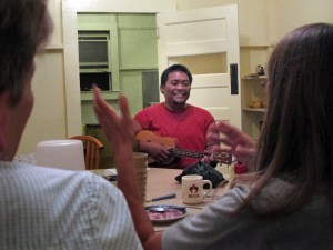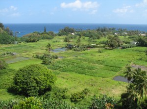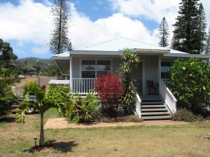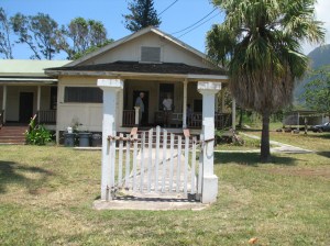 reserved jeep (from our house owner) and made our way to our new digs. And were they nice! A 2 bedroom modernized plantation style house that was just perfect. It even came with a resident calico kitty. She was such a nice kitty and greeted us every time we got near the door…inside or out. Of course we got some food for her and fed her and her mom who also came by on occasion. We left a note for the next tenants and some food to give to the kitties. We had lunch at the Blue Ginger (famous for its apple turnovers and tuna melts among other local plates), shopped for supplies at Richard’s Market and made a short trek over to the Lanai Cultural Center.