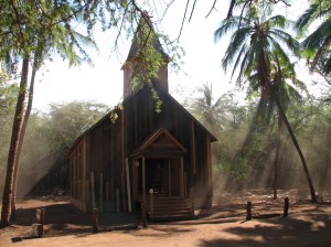 After seeing Dick’s photos, we hopped into the jeep and took a ride to the north shore to see an old church being restored at Keomoku. I found it to be very interesting because the rebuilders had to raise the church up out of the dust and basically rebuild the entire thing. The grand re-opening was to be this month(June, 2012), I hope it went well and that it was very well attended. Hidden in the surrounding underbrush (some of which is tricker than the briar patch that Bre’r Rabbit lived in)
