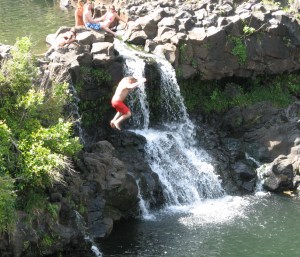 it because we were able to see the ruins of King Kamehameha the Great’s favorite summer fishing retreat. On the west bank of the valley, 200′ above the sea, stands Halulu heiau (place of worship). It was still in use up to circa 1819. Near the heiau was