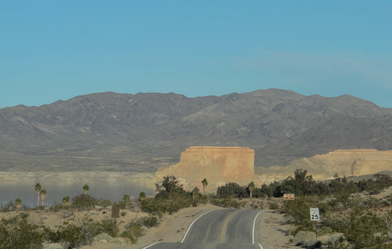 February first saw me zooming toward Las Vegas and points beyond to visit my college buddy, Gale, at Temple Bar, AZ.  I told everybody I was going to Lake Mead because no one (including me) had heard of Temple Bar.  The National Park Service says that Lake Mead is just minutes from Las Vegas.  I guess that is true if one is going only to Hoover Dam.  It’s another 45 miles to Temple Bar from Hoover Dam!  So Gale is basically out away from the hustle and bustle of ANYWHERE in her neat campground.  I should point out that Gale works as a camp volunteer picking up trash, weeding, making rock borders or other chores that need to be done around the 150 campsites and, for that effort, she gets free hookups for her trailer.  This is a pretty good deal since there are not many people at the campground and she’s worked hard to get the place looking nice.  So now she can pick and choose her time to work as the volunteer.