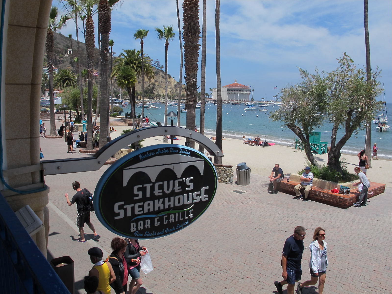 We parked our bags at the Pavilion Hotel because our rooms weren’t ready yet and sauntered over to Steve’s Steakhouse for lunch. It’s a neat place because not only does it have good food, it is on the second floor and provides a wonderful view of the bay and casino. I had my first buffalo burger ever there and enjoyed every bite of it. I doubt if it was a Catalina buffalo as just about every restaurant there offers those burgers and that would decimate the small herd of 250.
