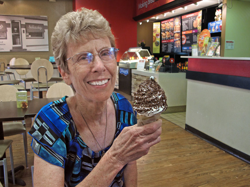 sandwiches and, since there are none in Sacramento, he indulges whenever he is within 50 miles of one. It was a tasty meal and we both enjoyed Schlotzsky’s best that they have to offer. I must say that I really enjoyed the ice cream afterward as much as the sandwich. Love that soft ice cream…especially with the chocolate sprinkles!
