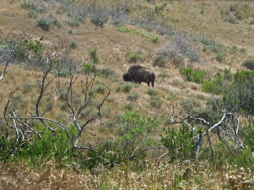 This was a great tour as far as I was concerned as we got to see two Catalina buffalo and one Catalina Island fox. Freddie said his tours hadn’t seen these critters for a few days, so we were lucky to have the chance to view them. The little fox is only as big as a large cat and is very skitterish. So we only caught a short glimpse of him.