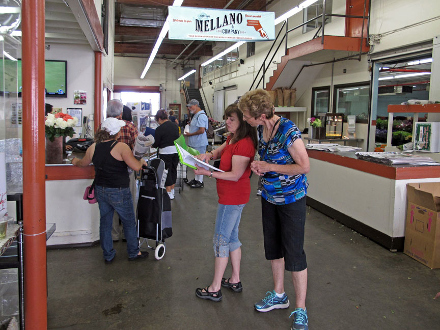 The next morning marked Connie’s transition from a relaxed Catalina cavorter to a “we’ll never be ready!” florist for her granddaughter’s wedding the following Sunday. Off we went to the flower district in downtown Los Angeles. The visit, in and of itself, was a new experience for me. I don’t think I’d ever been in that part of LA before, much less seen any of those flower shops. Connie had ordered her flowers ahead of time and that part of her purchase took hardly any time. They were ready for her!