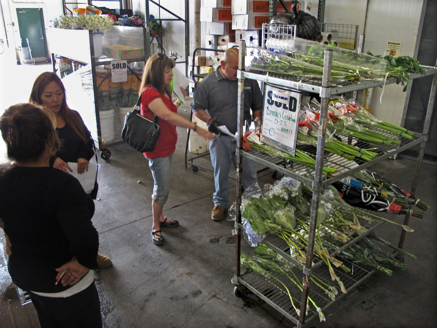 After consulting with Ricky, her personal Mellanos’ advisor, she decided she needed more flowers and we went next door. It reminded me so much of the Rose Parade and all the flowers they use there. It was an amazing place filled with flower stalls, buckets, flowers of all kinds, colors, scents, and people scurrying to beat the deadline of the place closing at noon. (They open at something like 2 or 3 AM!)