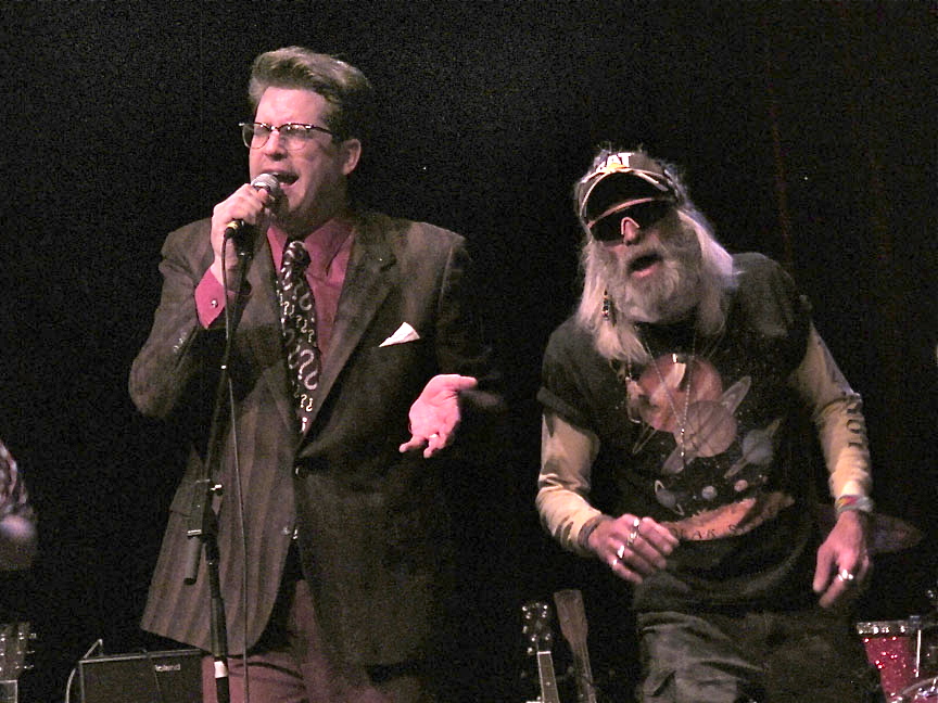 The concert began and Antsy was into about the 2nd or 3rd song when this OLD dude waltzed down the center aisle, put down a couple of things he was carrying and stood off to one side at the foot of the stage. I forgot my camera (dumb!) so you’ll have to picture this. He reminded me of an old prospector with long white hair and a longer white beard. He initially wore a cowboy hat but he took that off and had on a skunk hat (not unlike a coonskin cap). His clothes were as follows. Knee high boots, knee length cargo shorts and a sweatshirt that I couldn’t quite read what it said. He also wore dark glasses throughout the concert. Antsy was singing “Living in Aluminum” and this guy began to dance. He reminded me of a bobble head doll with arms that flopped around and legs that sort of hopped around. Jerri and I almost fell on the floor laughing. Antsy just about lost it, I think, as he sort of did a double take when this guy walked in. The guy was obviously a fan as he sort of lip-synched every single tune. He kept up the dancing throughout the first half of the show. A couple of times, females (I’m not sure they were all ladies) would dance with him. They just sort of sidled up to him and began to dance. It was truly Halloween!