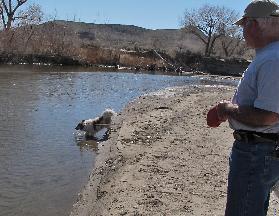 It was pretty warm and Jack and I thought the “girls” (Lucy and Molly) would like a drink. We took them down to the river, but only Molly took advantage of the drink. She loves the water!