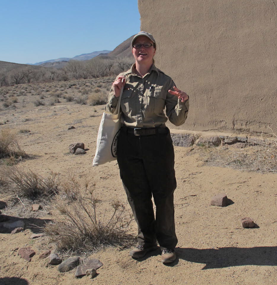 We left the actual fort area and walked along a trail that led to the Carson River, the only perennial source of surface water near the park. As we trod along the trail, we could hear woodpeckers, quail, black birds and other birds. We didn’t see any critters, other than lizards, but we know they live there because we saw some evidence of their presence. Beavers had felled trees, scat was visible in some parts of the trail and we might have smelled skunk if we’d scared one. But most of the critters Kim told us about are nocturnal, so we weren’t likely to see any.