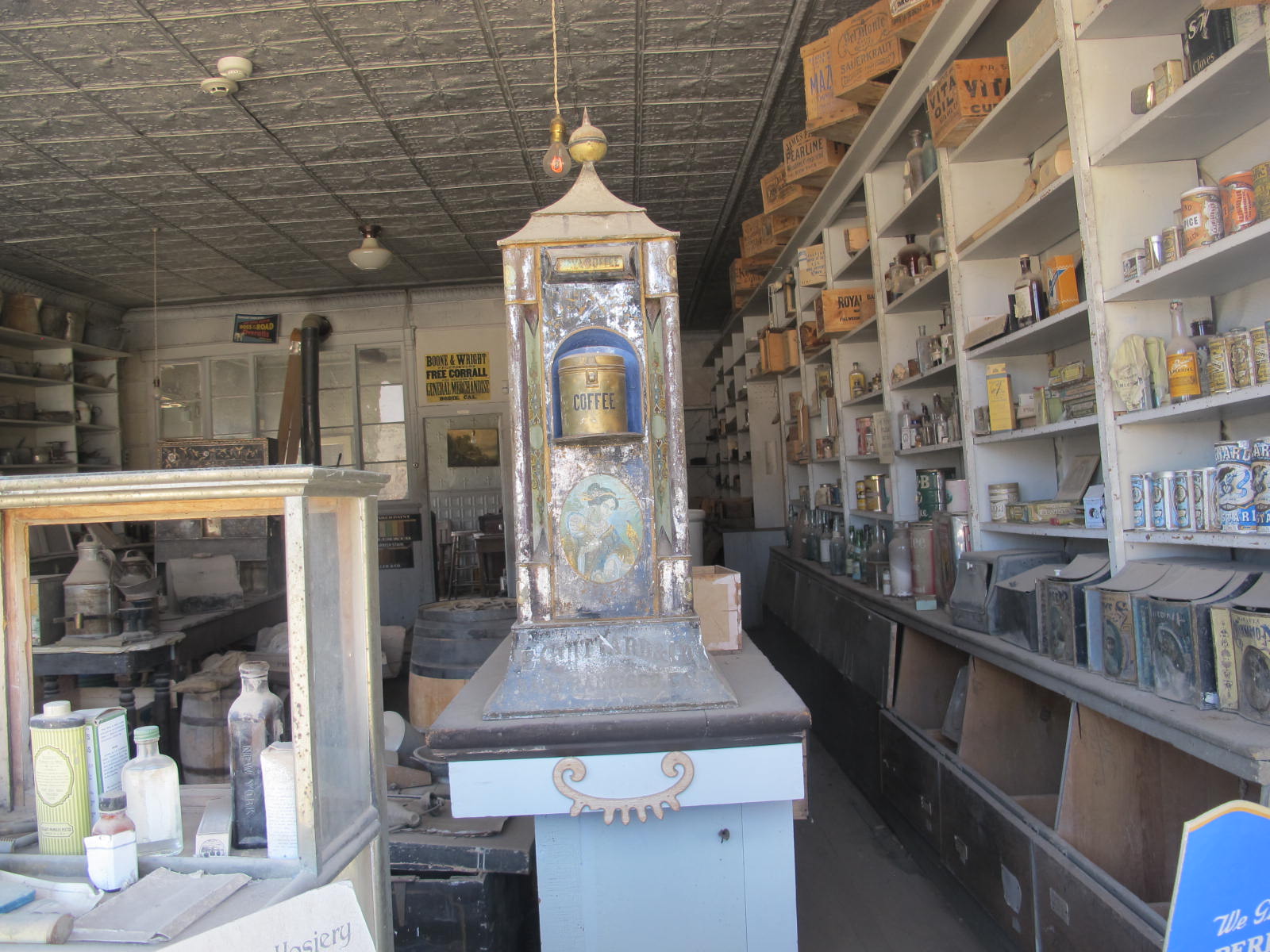 An old coffee grinder in the Boone Store. With so much stuff on the shelves, it almost looks as if the store could open up tomorrow.