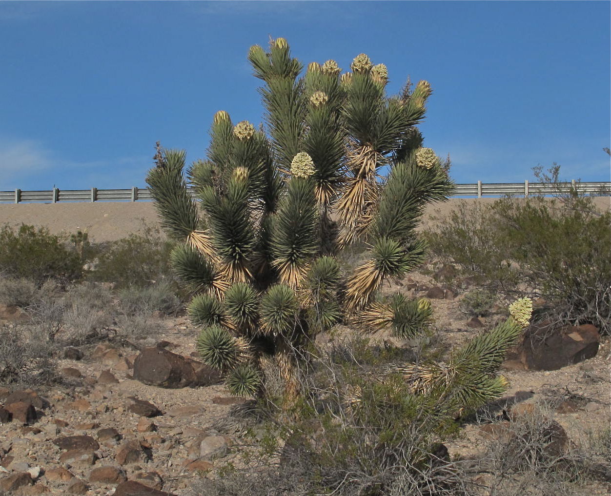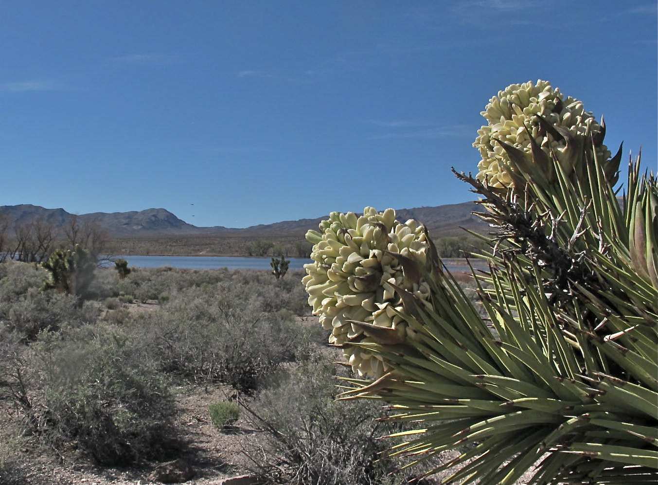 Some desert flowers were in bloom but my pictures did not turn out at all. But many Joshua trees grow in the Pahranagat area and many were in bloom. I like their weird shapes with their arms reaching to the sky. Technically, they are not trees, but that’s their name, so we’ll go with that.