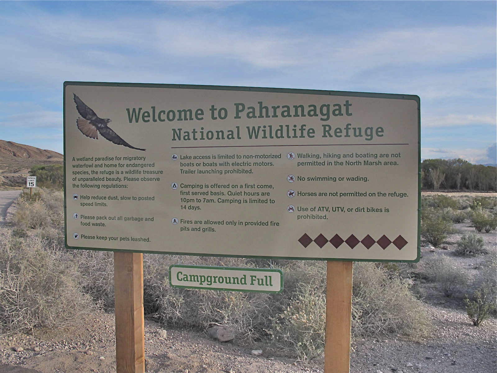 I arrived at Pahranagat (Pah-ran’ a-gat) mid-afternoon and was greeted by this sign.