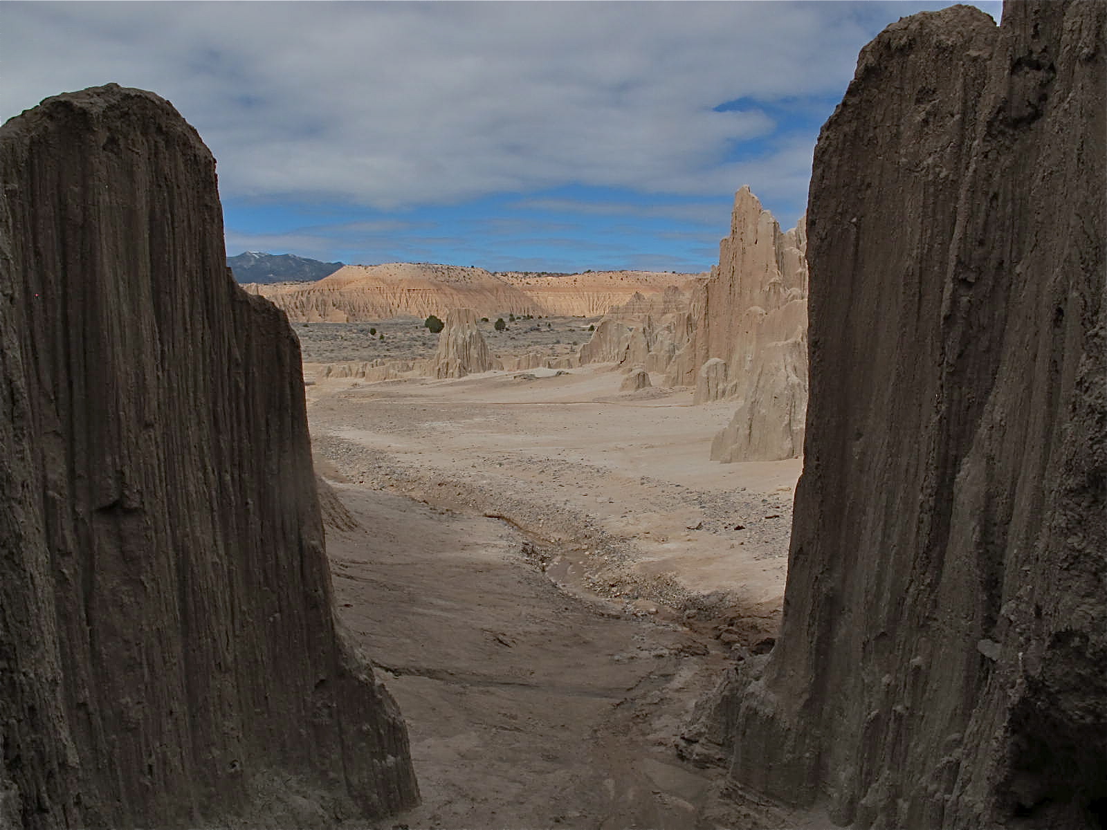 The next day, we headed up to Cathedral Gorge State Park, about an hour north of Pahranagat. This area was once home to the Fremont, Anasazi and Southern Paiutes and now is an area for visitors to camp at and enjoy. It became one of Nevada’s first four state parks in 1935. The original picnic areas were built by the CCC (Civilian Conservation Corps) in the 1930s and are still in use today. I always like to learn about CCC projects because my dad was in the CCC and I think it’s interesting to learn about the various projects they did.