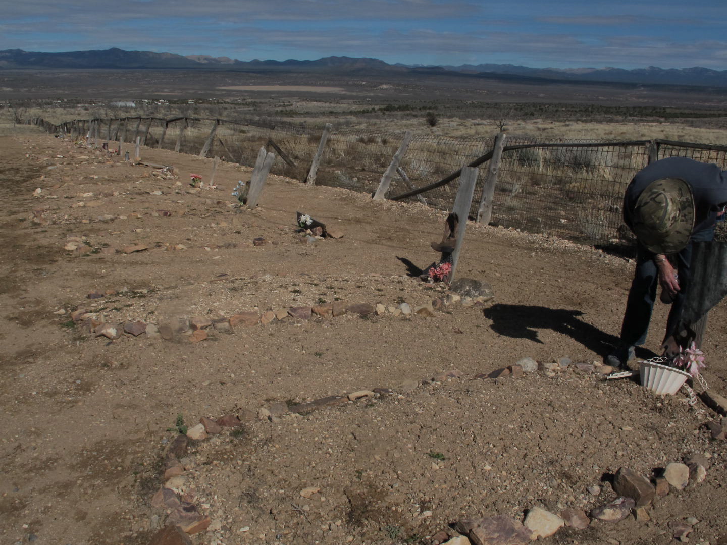 From Cathedral Gorge, we drove to the old mining town of Pioche developed in the 1860s by a Frenchman F.L.A. Pioche. Supposedly, it was the “baddest” town in the West. Perhaps it was. I have read several sources that claim 72 people died from “lead poisoning”(gun shots) before the first person died of natural causes. We visited the Pioche Boot Hill that has recently been cleared of weeds and such by local citizens. I think I would tend to believe the accounts after reading a few of the wooden headstones. A Pioche web site said “Murderer’s Row of more than 100 killers was fenced off from graves of the more respectable occupants of the cemetery.”