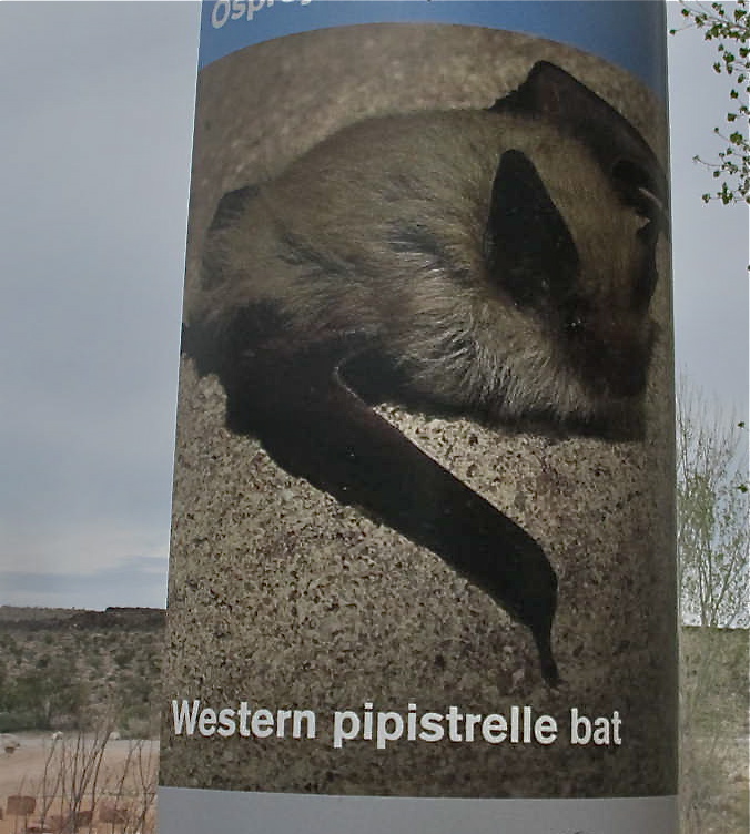 Speaking of clinging. Pahranagat is home to the Western pipistrelle bat, the smallest bat in the USA. They weigh between 0.1 -0.2 ounces and their wingspan is between 7-9 inches. One was roosting in the eave of the main door to the Pahranagat Visitor Center and looked like a tiny brown blob in the corner. They like to eat swarming insects, such as mosquitoes. So we like them to be out and about and we don’t have to be concerned about them biting us (which bats don’t normally do anyway).