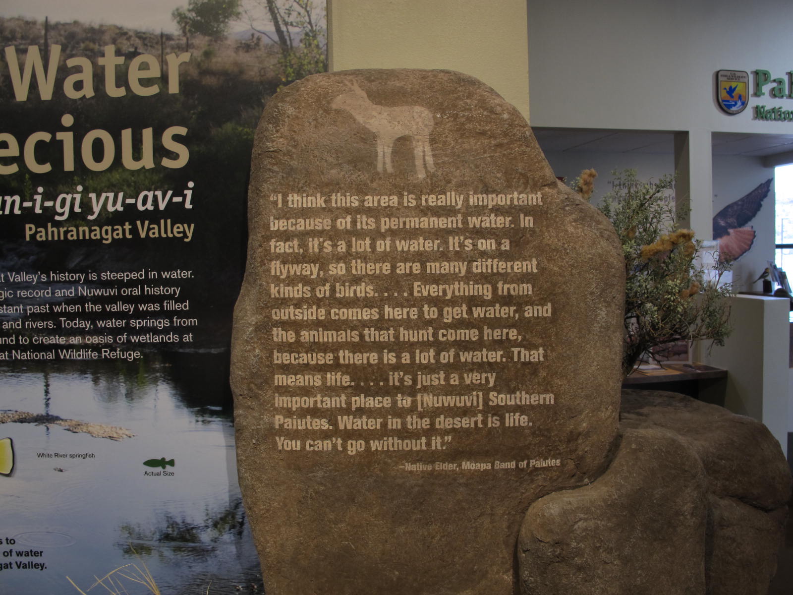 The Visitors Center is very well done and so informational. I particularly liked how the Paiute culture is interwoven with the wildlife story of Pahranagat. Generations of Nuwuvi valued the desert and water resources and maintained strong tied to the living landscape of which people, wildlife and plants are all an integral part.