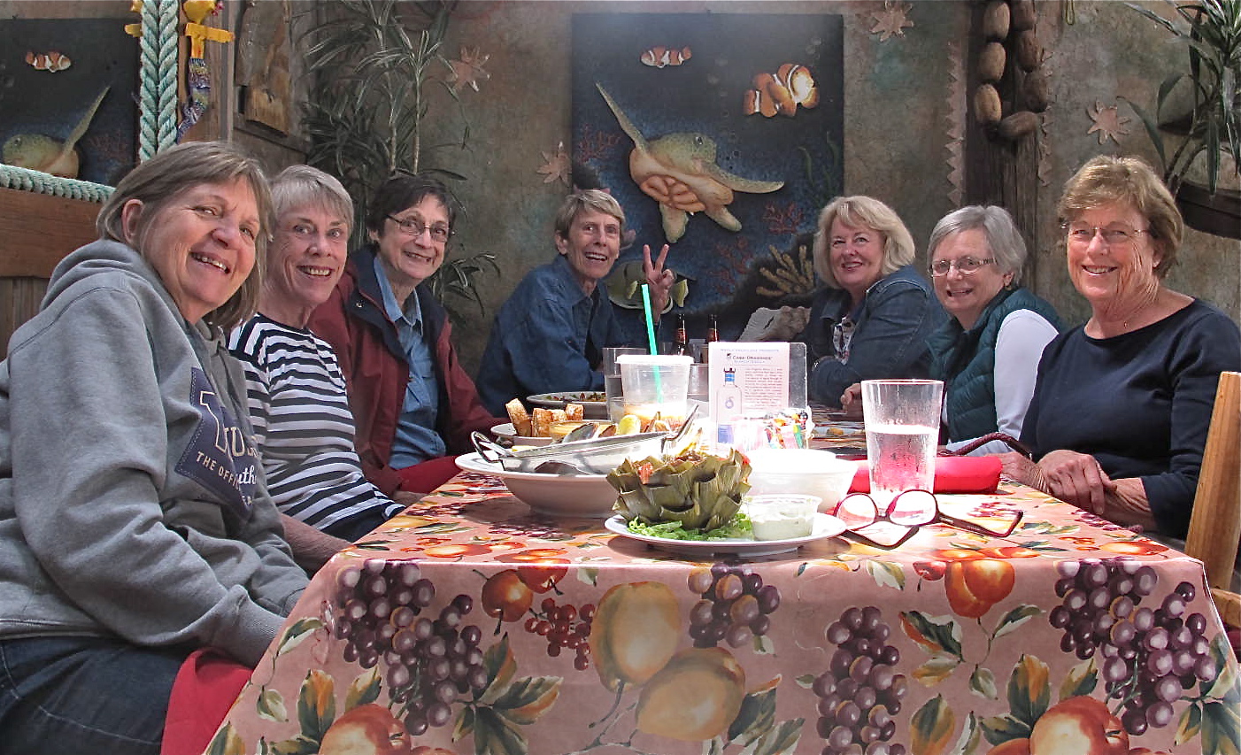 With the promise of fun and frolic, Diana and I headed over the Sierras to our beloved gathering of Orange High longtime friends at Pajaro Dunes on the Monterey Bay. On the way, we stopped at San Jose Airport to pick up Elizabeth and Dot who flew in from points afar.