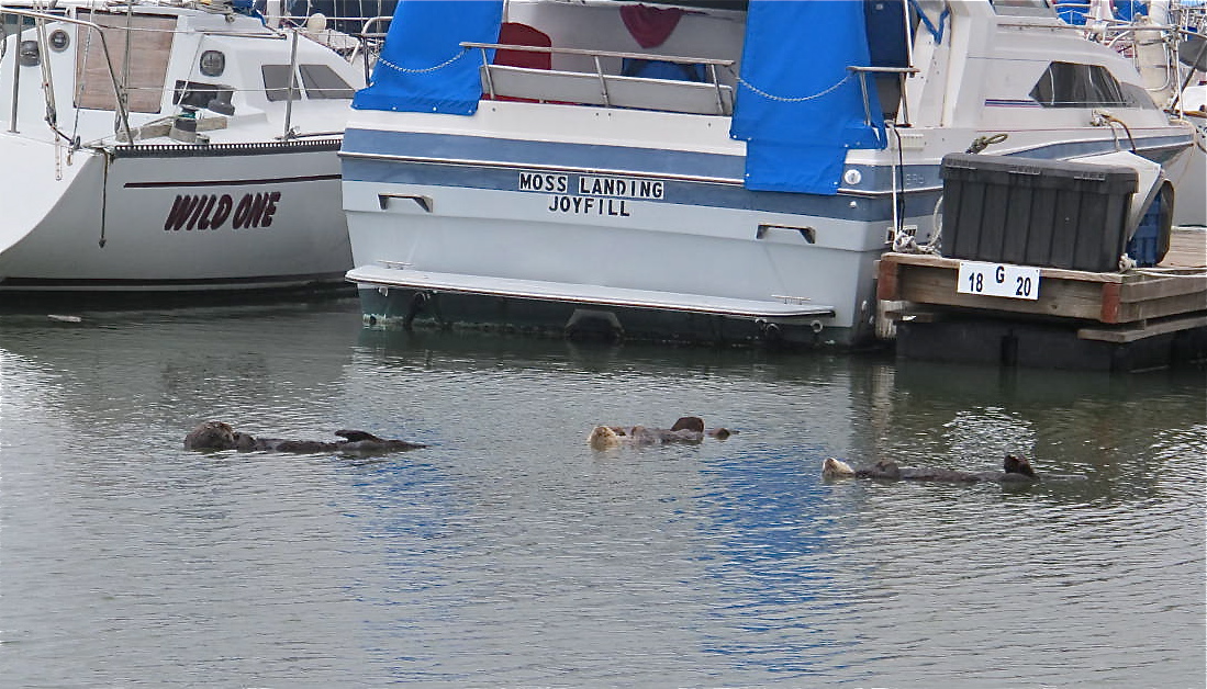 Just across the street from the Enchilada is part of the marina for Moss Landing. We checked it out and there were three otters floating on their backs, taking a nap. They were/are so cute!