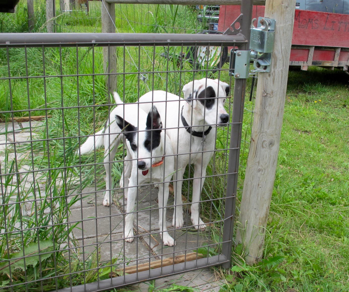 Teri is telling Hank to get back with the other dogs to get back with the other dogs. Then, the other dogs are asking, why can’t we be out with Hank (because he was big enough to jump the fence.)