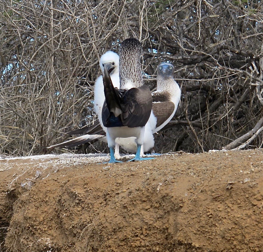 As we walked farther into the trail, we continued to see many marine iguanas and lava lizards. We watch one lava lizard try to court a female. He would do his push ups (as we might have seen lizards in our area do). The female would kind of dance around as I remember and then he’d do some more advancing. But after a bit, the female walked away. He looked dejected but perhaps he because his tail was short. Perhaps he lost it in a fight or maybe a bird tried to get him.