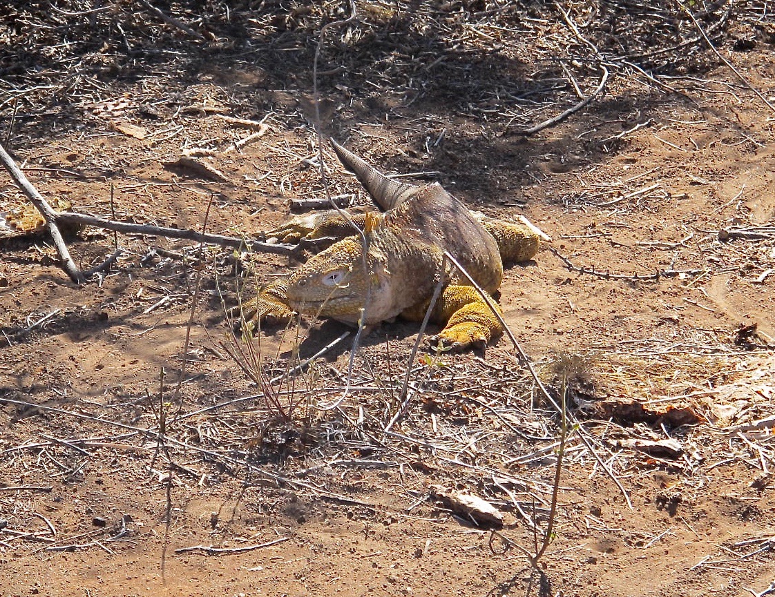 Soon we left the easy sand and began to walk on a pretty rough path. We all had to watch our step…for more than one reason. A marine iguana and a seal lion were on the path each doing it’s own thing.