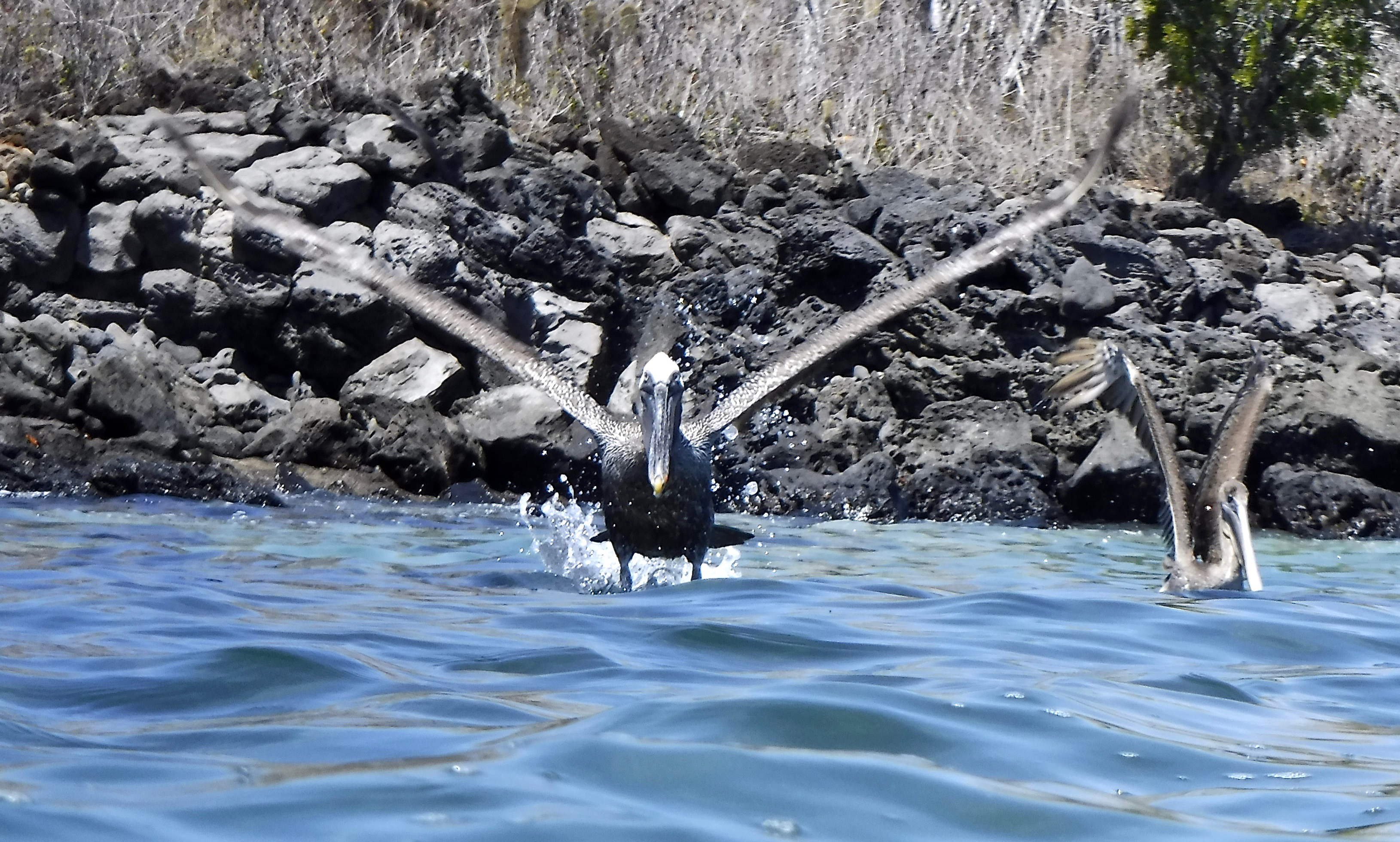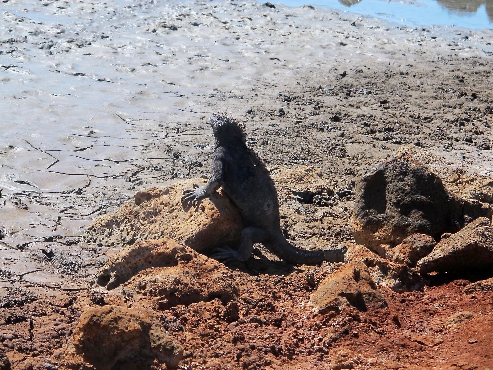 On the way back to our Zodiac, I took this picture of the “Creature from the Black Lagoon.” Note how sort of smushed its face is. This is an adaptation that allows the iguana to crop the algae even closer to the rock.