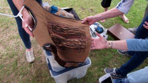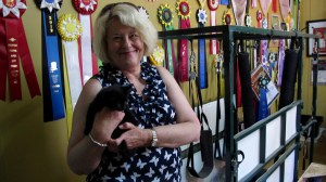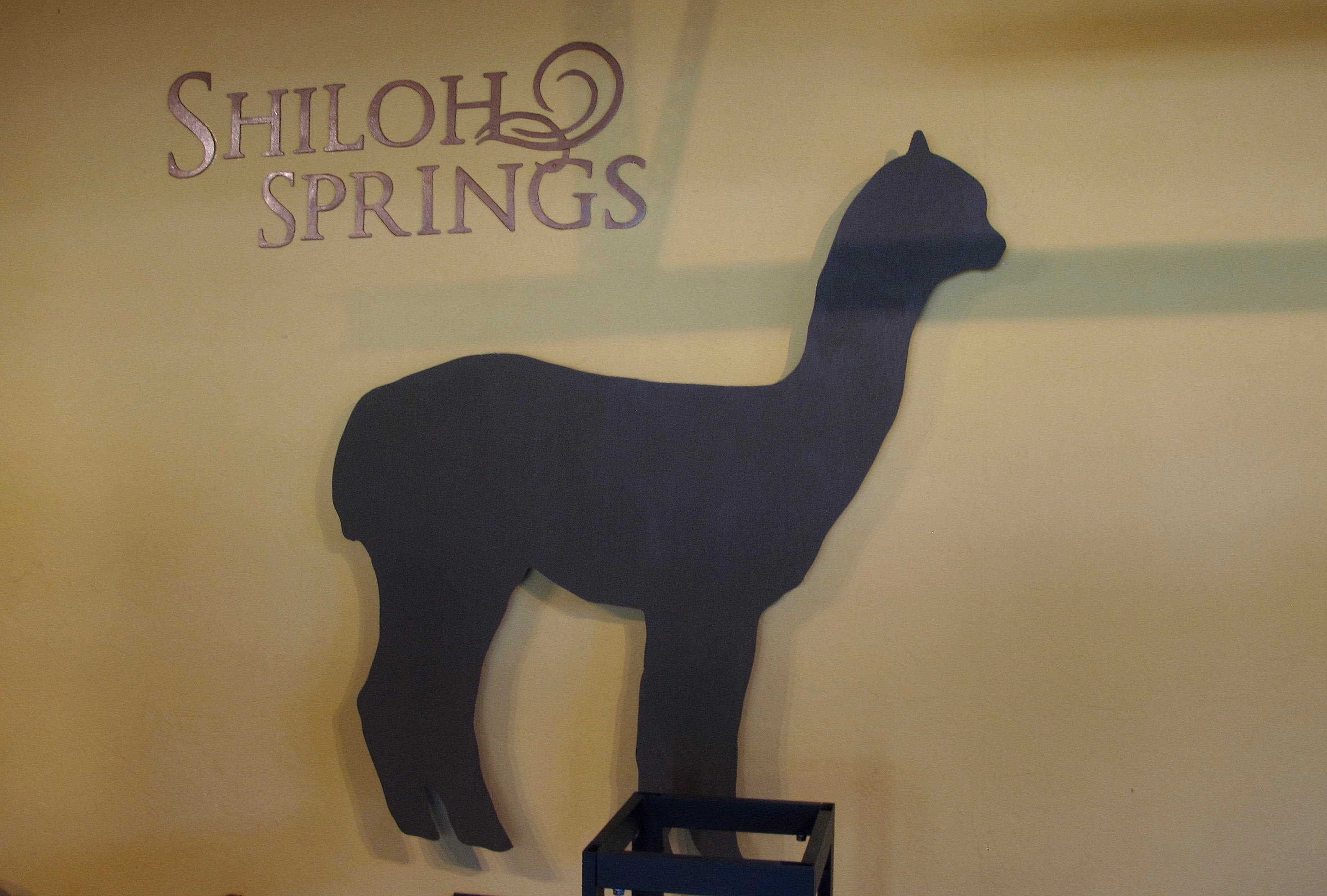 Not only did we get to see the alpaca products but we got a tour of the other ranch areas, such as their veterinary facilities and a work place to make more products. Nancy was a foster mom to a pregnant cat and Diana is holding one of the offspring. You can see some of the many prize winning ribbons on the wall behind Diana.