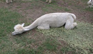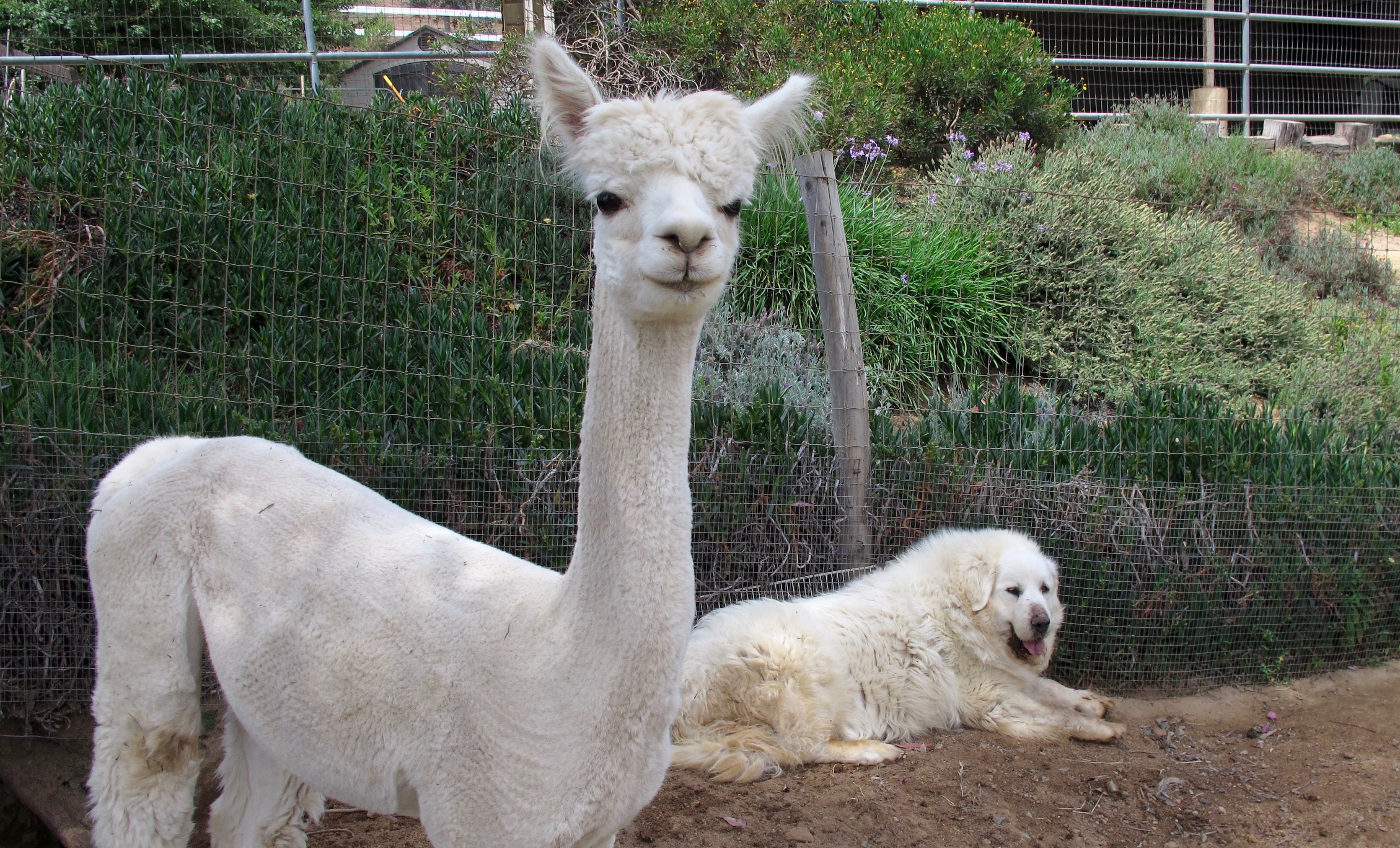 The other guard/caretakers are two big Great Pyrenees dogs. They are also used in North America as livestock guardians. I wouldn’t mess with these dogs but they were pretty mellow while we were around. The alpacas were recently sheared and that’s why it looks like little waves in their coats.