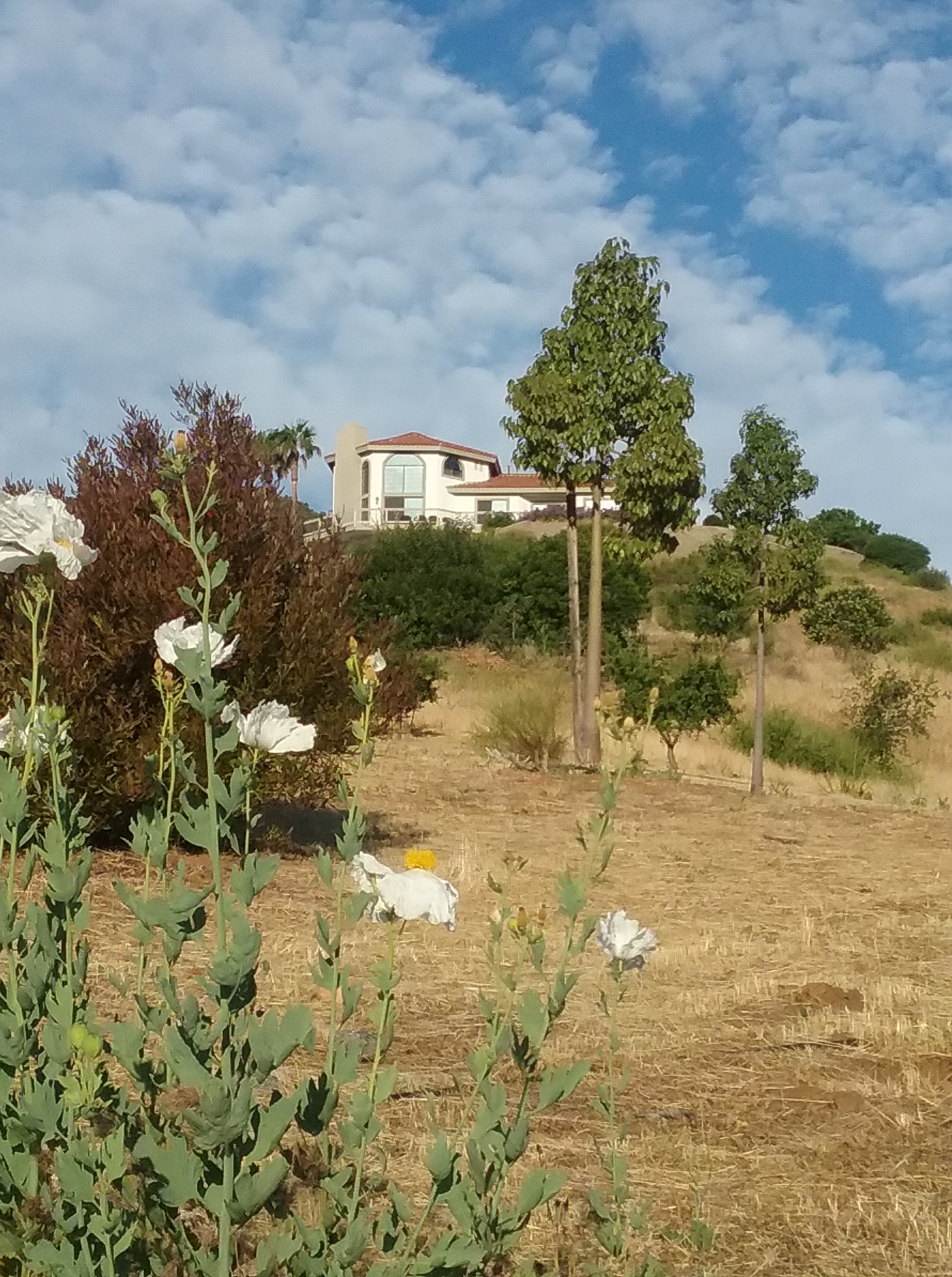 Dot lives on hillside that overlooks the valley and this is one view from her house. In the distance, one can see Mt. Palomar along with its famous Palomar Observatory. It’s a tiny, tiny white dot sort of in the right center of the mountain.