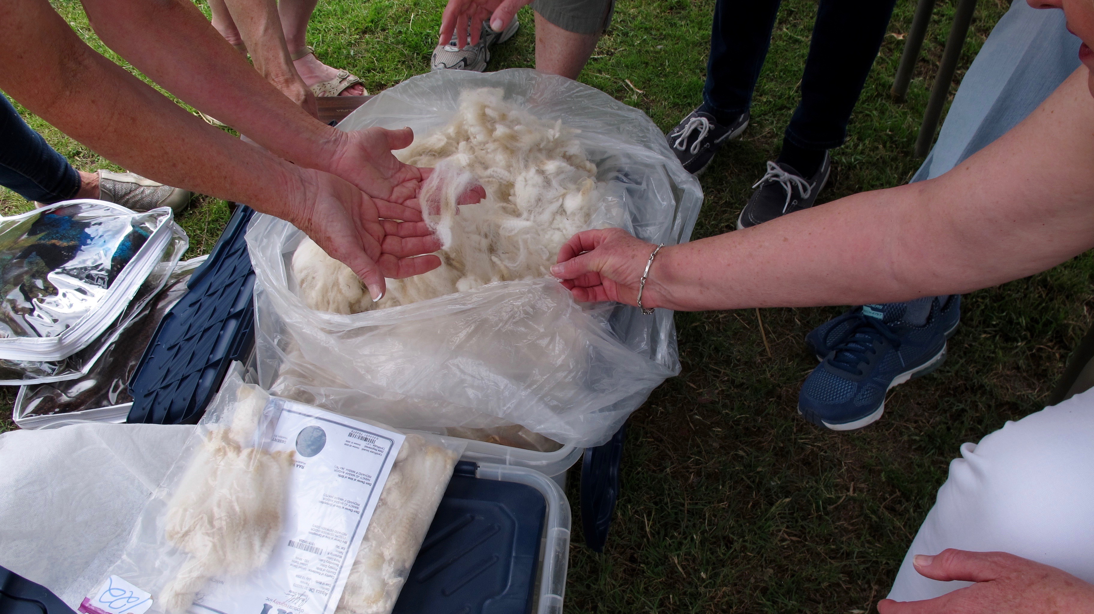 One of the things she does with the wool is called felting. She makes a design with the different colors of wool and then lays it out on a piece of silk and the wool/yarn strands somehow hook onto the silk. One doesn’t need any glue to make this work. This picture shows the outside (the farthest away) and the inside (nearest).
