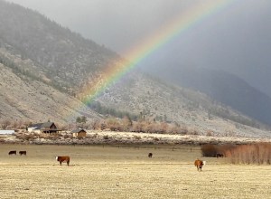 I was on my way back from Woodford’s, a tiny settlement that is the first place in California to buy Lotto tickets when I saw these “raincows” and a rainbow announcing that the pot o’ gold is in that house and all is right with the world.