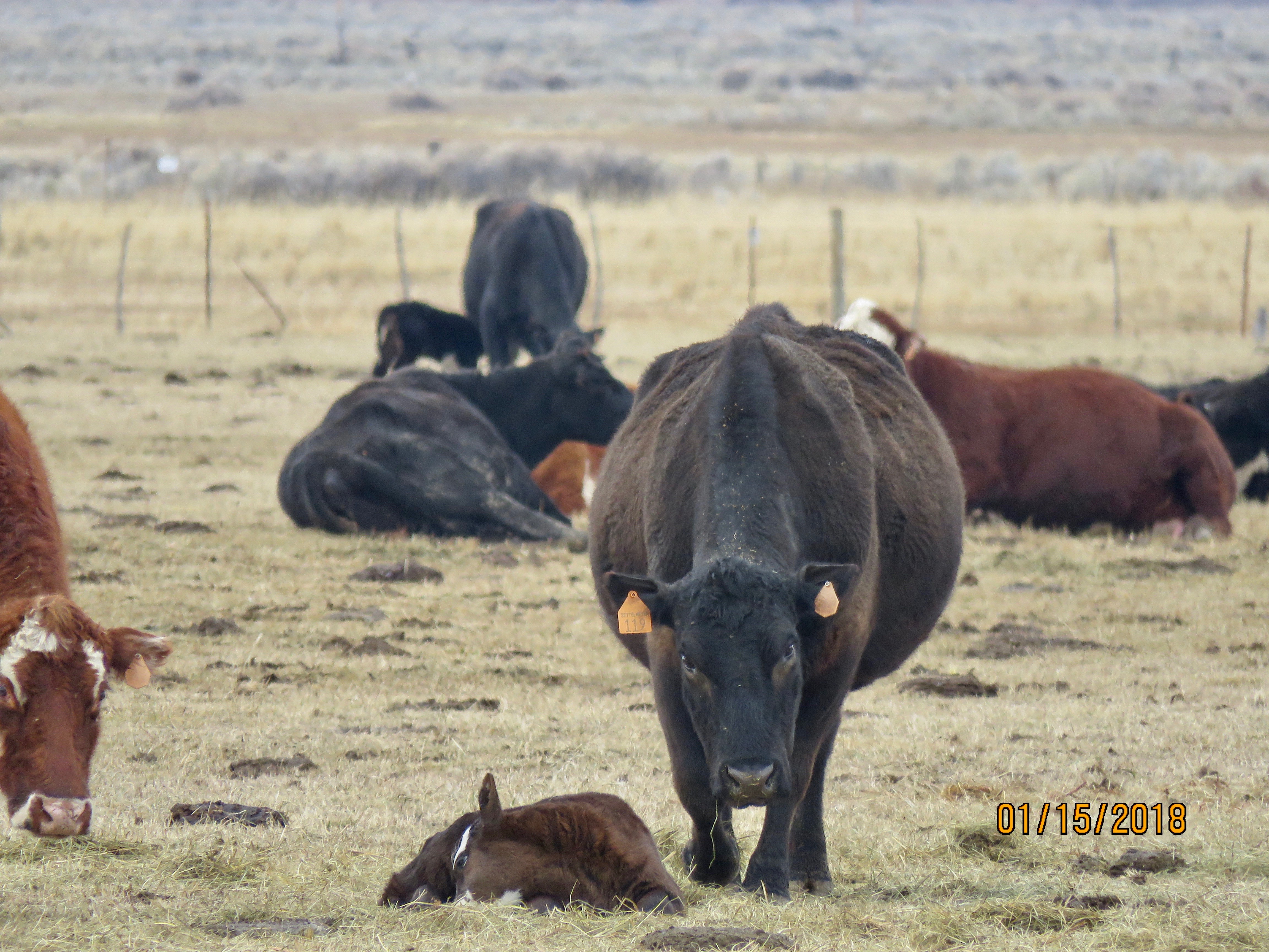 Three days later I stopped by the Settlemeyer Ranch again to see what was happening. More babies had been born. The cow lying down with the babies had given birth maybe the day before, as her baby was quite small.