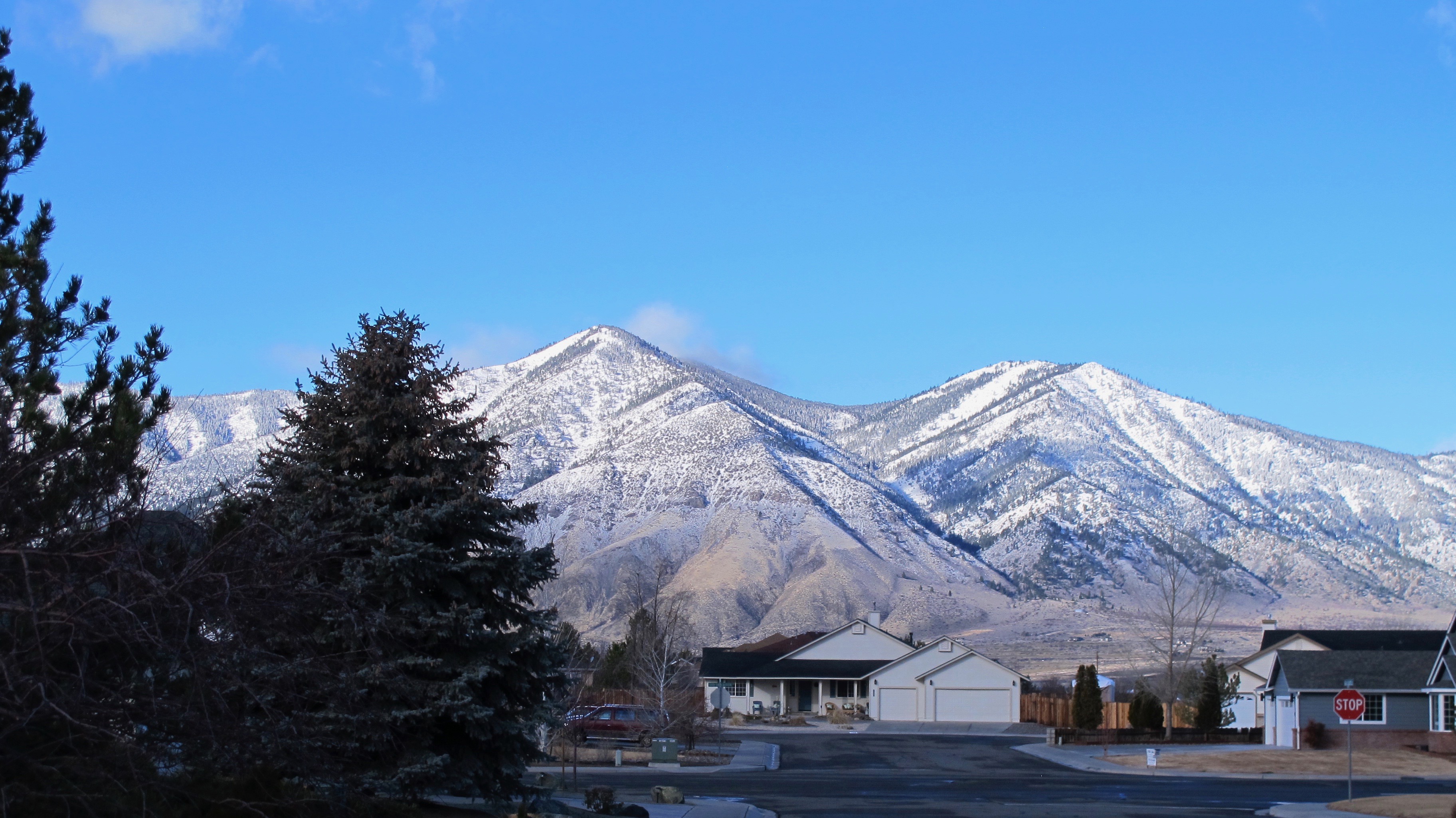 We had pretty good winds yesterday, topping 50 mph and 70 near Lake Tahoe. The mountains got some snow and we got a spritz. It was snowing a tad when I went to the gym this morning, but nothing stuck. This was the scene looking west this morning. The mountains look so close but the foothills are actually 6 or more miles away. I never tire of this view.