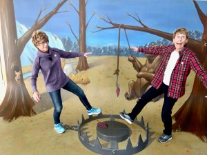 The Visitors’ Center has wonderful photo opportunities depicting past and present critters with whom to pose. We don’t look too scared do we?