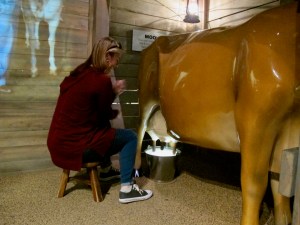 The Center even has a cow where you can learn to milk it. Jolee was the fastest and got her pail to light up first.