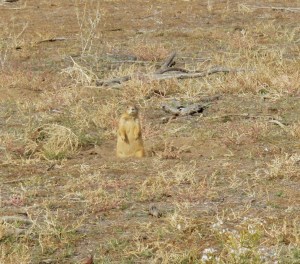 This prairie dog greeted us as we drove by him. You can see how he blends into the background and how we had hard time seeing them in the camera viewfinder.